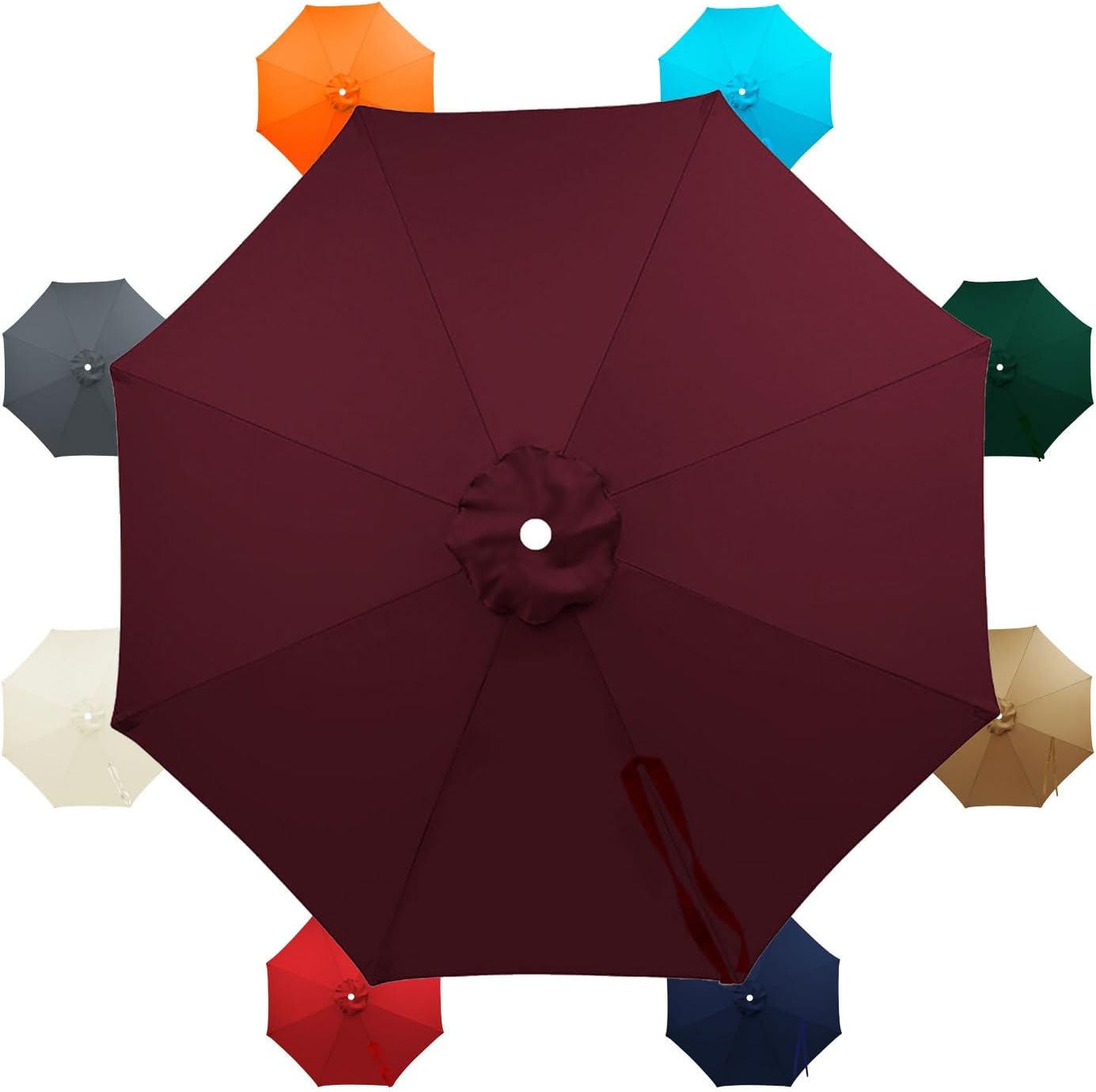 we offer a variety of colors and sizes for you to choose from, you can choose different colors according to your personal preferences and occasions, please be sure to measure the length of the umbrella ribs before purchasing to make sure that you have chosen the correct sizeProduct information:Name: 8 ribs replacement patio umbrella canopy coverPackage: 1 pieceMaterial: Polyester size:8 ribs-300cm(9.8ft)/8 ribs-350cm(11.5ft)/8ribs-400cm(13ft)Slight color difference could exist due to the lighting effect in the photos.1-2 cm size difference may occur as all the measurements taken by hands.