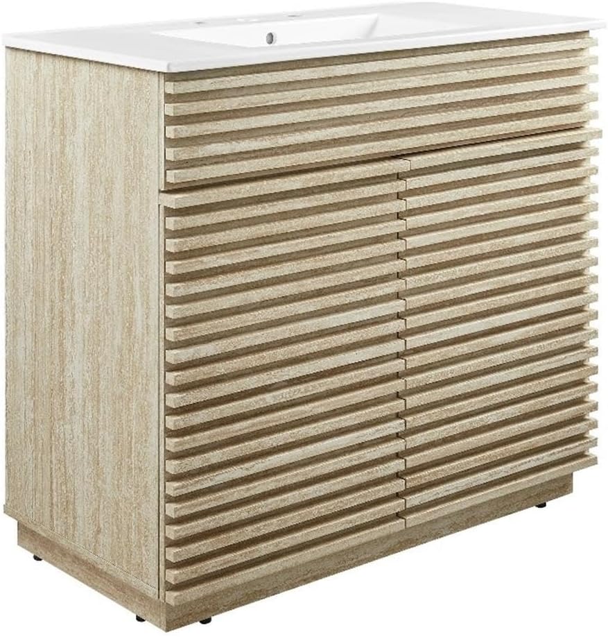 | Item Type Name | Faux Travertine Slatted Bathroom Cabinet in Travertine - 24 Inch Single Bathroom Vanity with No Sink |