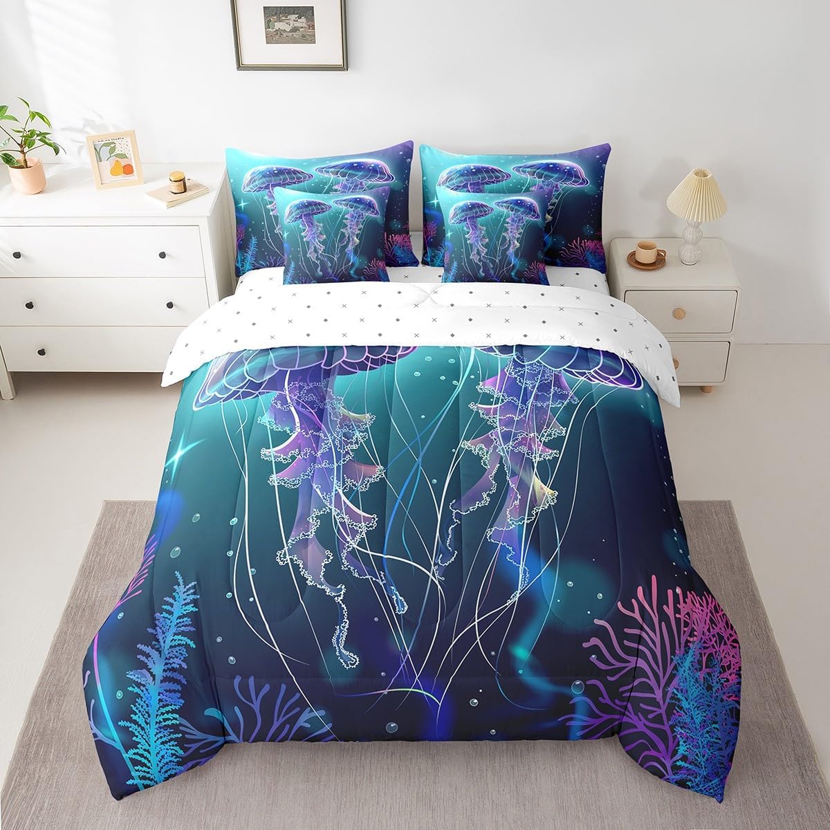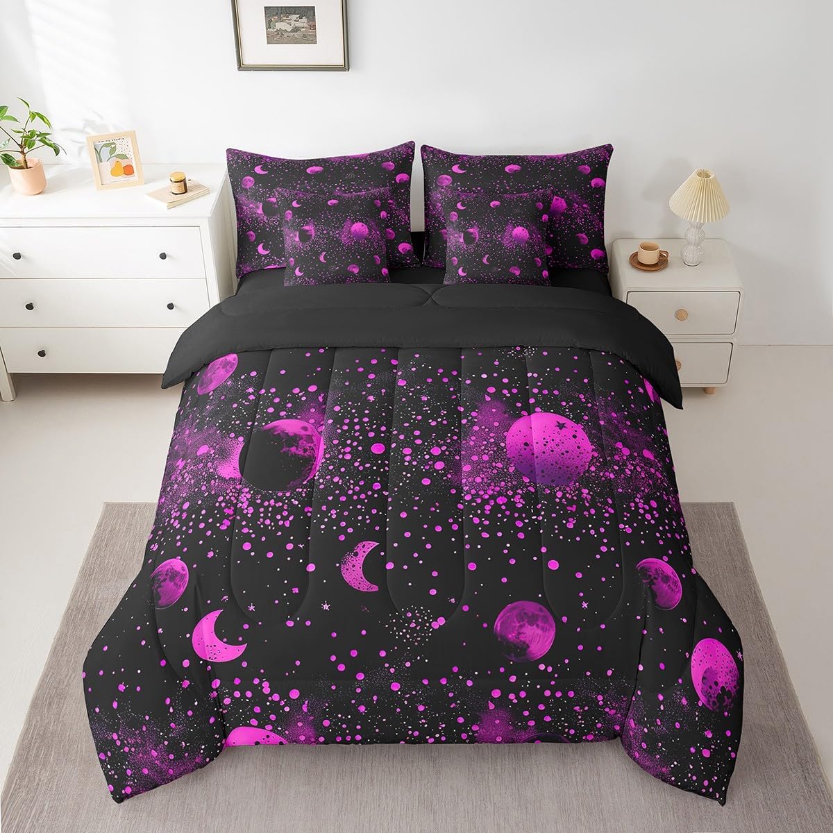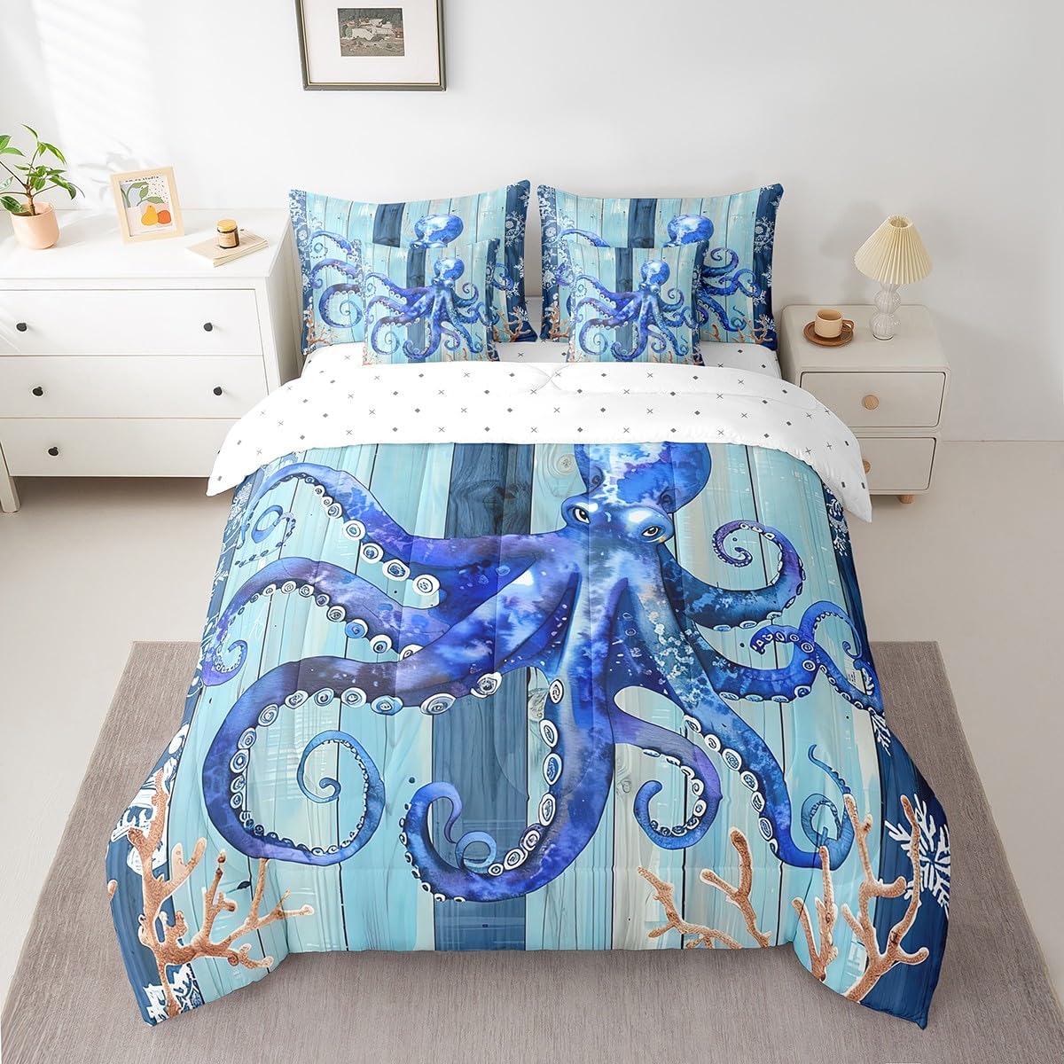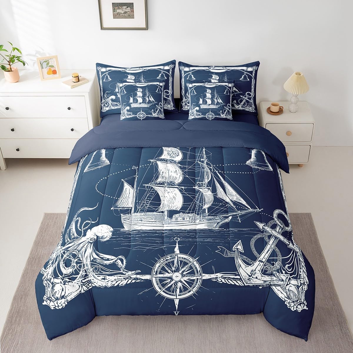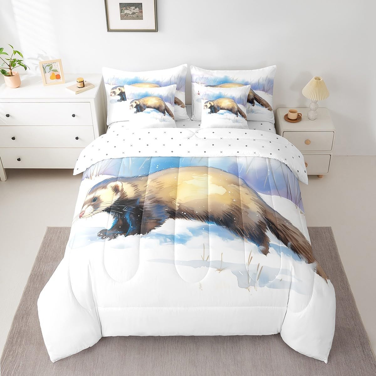 This 7 pieces comforter set is a luxurious and complete bedding ensemble designed to enhance your sleep experience and beautify your bedroom. This comprehensive set includes 1 comforter 90"x90",1 fitted sheet 60x80x16",1 flat sheet 102"x90",2 rectangular pillowcases 20"x30",2 square pillow shams 18"x18",providing everything you need for a cozy and stylish bed. Crafted with comfort in mind,this comforter set give a peaceful and restful sleep night after night. The quilt and bedspread are made from premium 90 grams of chemical fiber material that offer exceptional softness and durability. Their lightweight design ensures ultimate comfort without feeling too heavy or restrictive. Whether you prefer a warm and snug atmosphere or a cool and breezy feel,this versatile set caters to your every need. The included bed sheet complements the quilt and bedspread perfectly,ensuring a coordinated look that adds an elegant touch to any bedroom decor. Made from smooth and breathable fabric,it provides a gentle and soothing foundation for a blissful slumber. The four pillowcases,two rectangular and two square,add an additional layer of comfort and style to this set. Pillowcases are often overlooked,but they can make a significant difference in your overall sleep experience. These pillowcases are thoughtfully crafted to accommodate both standard and queen size pillows. With their exquisite design and soft texture,they effortlessly elevate the appearance of your bedding. Upgrade your bedroom decor and embrace a new level of relaxation with the 7 piece comforter set. Its combination of functionality,style,and comfort makes it an ideal choice for anyone seeking a cozy and aesthetically pleasing bedding solution.