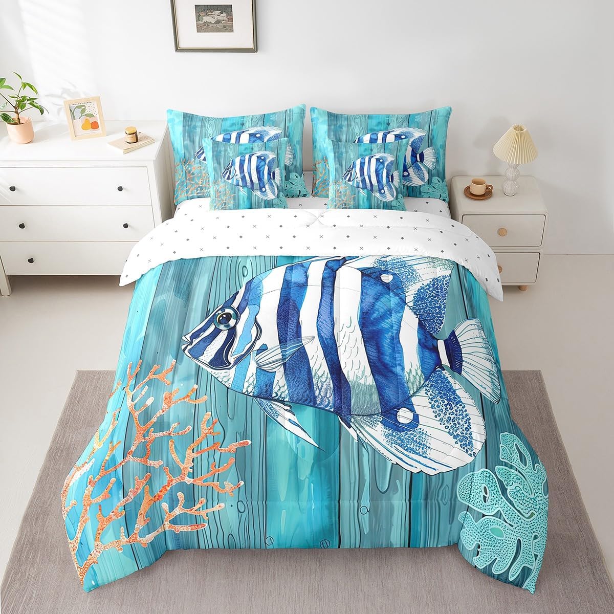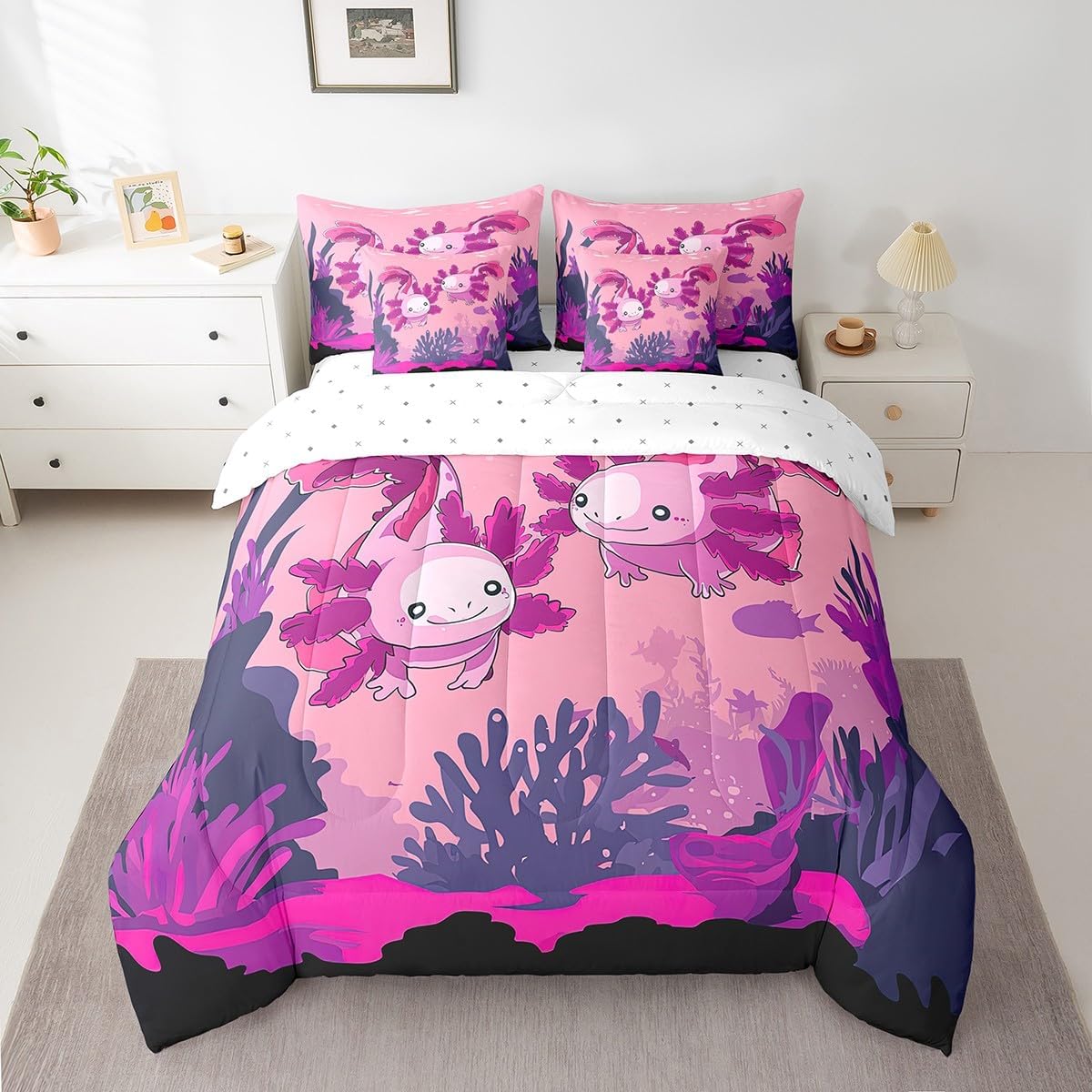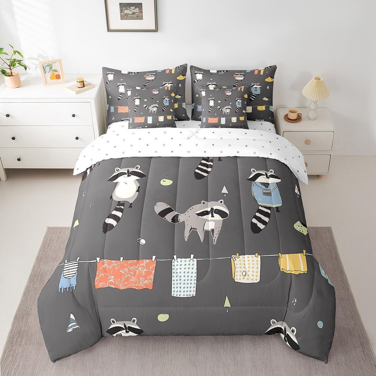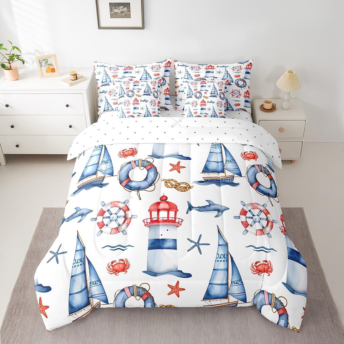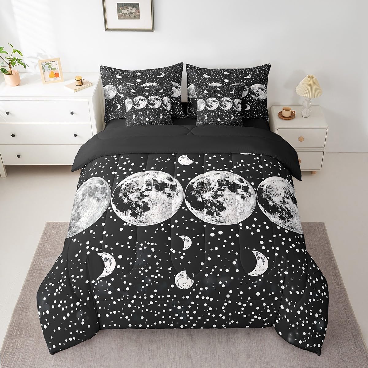 This 7 pieces comforter set is a luxurious and complete bedding ensemble designed to enhance your sleep experience and beautify your bedroom. This comprehensive set includes 1 comforter 90"x90",1 fitted sheet 60x80x16",1 flat sheet 102"x90",2 rectangular pillowcases 20"x30",2 square pillow shams 18"x18",providing everything you need for a cozy and stylish bed. Crafted with comfort in mind,this comforter set give a peaceful and restful sleep night after night. The quilt and bedspread are made from premium 90 grams of chemical fiber material that offer exceptional softness and durability. Their lightweight design ensures ultimate comfort without feeling too heavy or restrictive. Whether you prefer a warm and snug atmosphere or a cool and breezy feel,this versatile set caters to your every need. The included bed sheet complements the quilt and bedspread perfectly,ensuring a coordinated look that adds an elegant touch to any bedroom decor. Made from smooth and breathable fabric,it provides a gentle and soothing foundation for a blissful slumber. The four pillowcases,two rectangular and two square,add an additional layer of comfort and style to this set. Pillowcases are often overlooked,but they can make a significant difference in your overall sleep experience. These pillowcases are thoughtfully crafted to accommodate both standard and queen size pillows. With their exquisite design and soft texture,they effortlessly elevate the appearance of your bedding. Upgrade your bedroom decor and embrace a new level of relaxation with the 7 piece comforter set. Its combination of functionality,style,and comfort makes it an ideal choice for anyone seeking a cozy and aesthetically pleasing bedding solution.