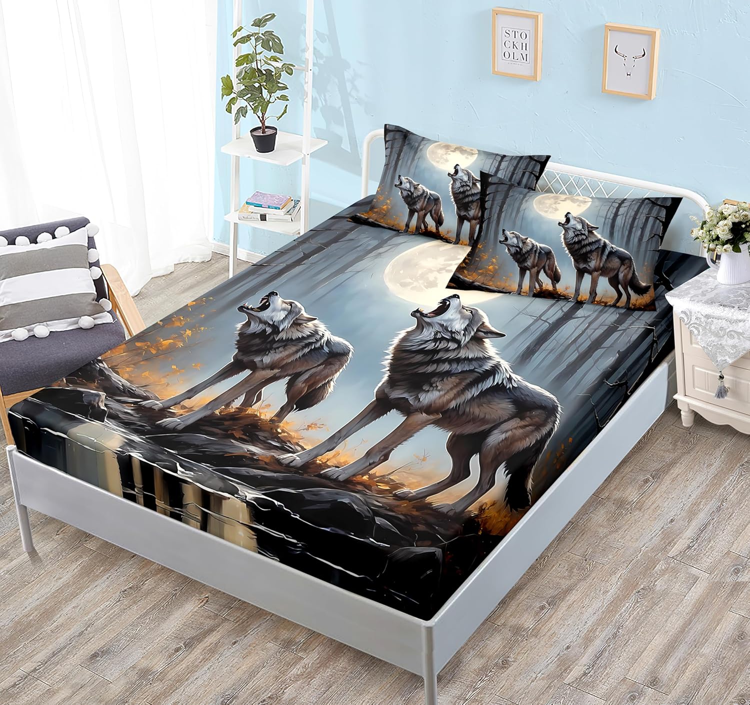 Package Includes:1x Fitted sheet2x PillowcasesEasy CareMachine wash in cold water, gentle cycle, tumble dry low, do not bleach.Size InformationTwin sizeFitted sheet: 39"W x 75"Lx15"H inchesPillowcase: 20 x 30 inchesFull sizeFitted sheet: 55"W x 75"Lx15"H inchesPillowcase: 20 x 30 inchesQueen sizeFitted sheet: 61"W x 81"Lx15"H inchesPillowcase: 20 x 73 inches