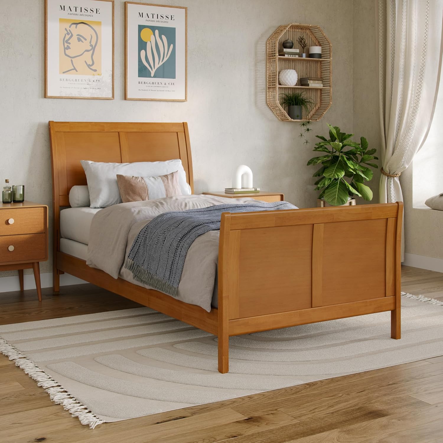 Elevate your bedroom with the Portland Solid Wood Foundation Bed Frame with Matching Footboard, a perfect combination of classic style and modern comfort. Featuring a beautifully curved sleigh panel headboard and coordinating footboard, the Portland creates a warm and inviting focal point in any room. Crafted from solid hardwood and veneer, this bed delivers lasting strength, stability, and timeless appeal. Available in Espresso, White, and Walnut finishes, the Portland complements a wide range of décor styles. Designed for use with a foundation or box spring, it provides reliable mattress support for a comfortable and restful night’s sleep. With size options including Twin XL, Twin, Full, Queen, and King, the Portland Solid Wood Foundation Bed Frame is a stylish and durable centerpiece for your home.