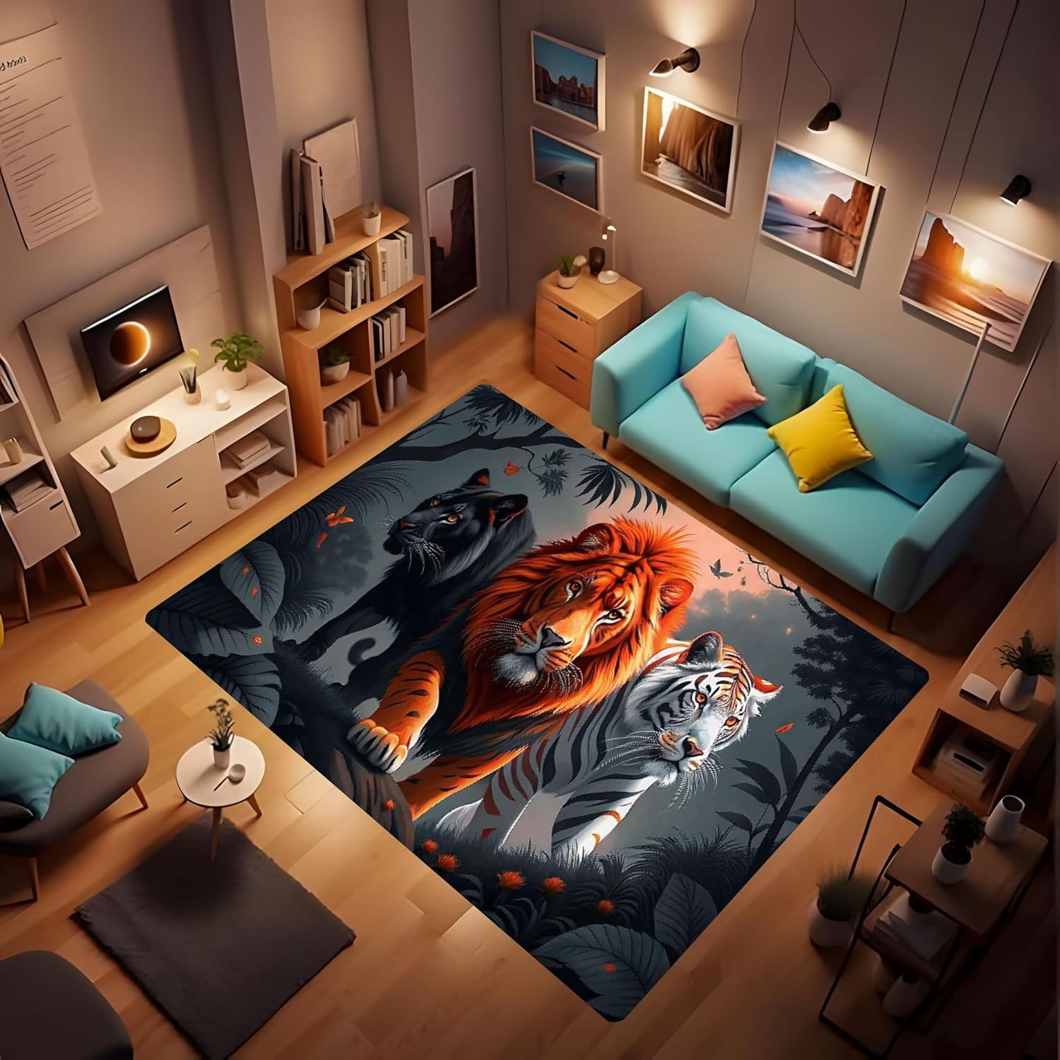 We are committed to providing you with better service. Our products include: Lion rugs, living room rugs, bedroom rugs, home decor non-slip crystal rugs, and polyester rugs. Product Description: Shape: Rectangular Size: 2' x 3' / 36'' x 24'' (60*90 cm), suitable for bathrooms and entrances 3' 4'' x 5' / 60'' x 40'' (100*150 cm) 5' x 6' 8'' / 80'' x 60'' (150*200 cm) 5' 3'' x 7' 6'' / 94'' x 63'' (160*240 cm) Material: Polyester Package Includes: 1 rug Features: * Lion Style This bedroom rug has a distinctly country home decor style. * Made with environmentally friendly dyes for superior wash fastness. * This non-slip rug is soft to the touch and easy to clean and maintain. * Easy maintenance and durability are the true values of this eco-friendly bedroom rug. * This Lion-style rug protects all rugs from damage, allowing you to move easily and smoothly in your workplace or home. * Please note: 1. The bedroom rug is individually vacuum-packed, but it will return to its original shape after 1-2 days without affecting its use. * Please follow the washing instructions. Do not expose to direct sunlight after washing. * If you find an odor when you receive the product, please place it in a ventilated area for a period of time. * Due to the influence of monitor and camera lighting, the color of the picture may be slightly different from the actual product color. * Please feel free to contact us if you have any questions."