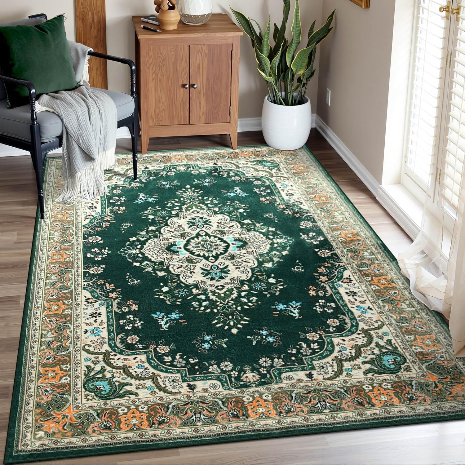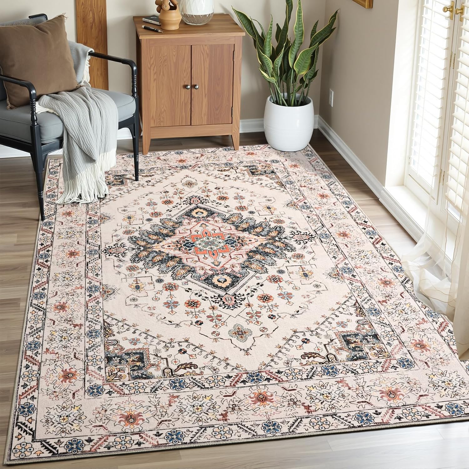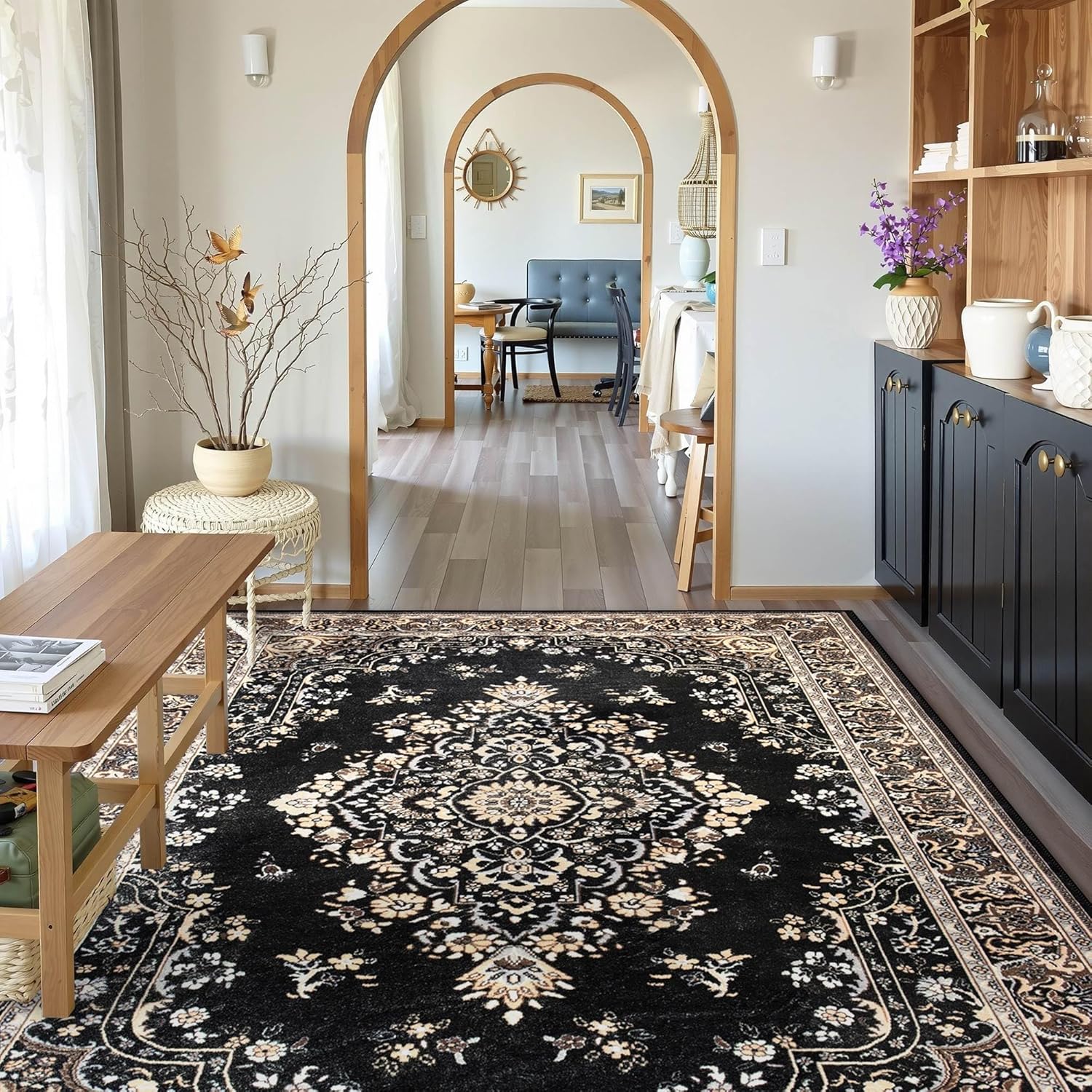 Décor That Adapts1.Bohemian Home Decor:(1) A floral rug brightens cottage-style bedrooms, romantic sitting areas, and coastal-inspired spaces with organic charm.(2) (2)Fits well for living rooms, bedrooms, dining room, offices, porch and nursery. 2.Safety First, Always(1)Non-slip Grip: Holds strong during puppy zoomies or toddler dance parties.(2)Floor Defender: Shields hardwood/tile from scratches.3.Faux Wool, Real Luxury(1)Plush 0.2-inch pile mimics wool’s richness without shedding or scratchiness.(2)Stain-lock fibers laugh off coffee spills and muddy boots.4.Wash & Refresh(1)Shake or vacuum. kicks out crumbs/dust.(2) Blot spills fast with soapy water.
