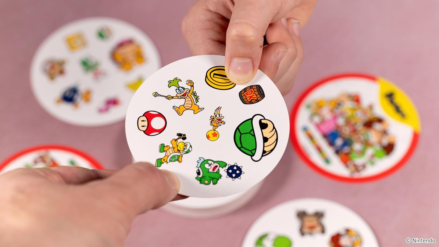 Experience the Dobble Super Mario card game, an exciting fusion of speed and visual recognition game Dobble and the iconic universe of Super Mario. Perfect for the whole family, this captivating game will immerse you in wild games where reflexes and observation will be your best allies. Dobble Super Mario consists of 55 cards, each adorned with symbols and characters from the popular Nintendo franchise. From Mario to Luigi, Princess Peach and Bowser, find all your favorite heroes in a challenge of speed and precision. The goal is simple: be the first to spot the identical symbol between two cards and name it aloud. But don't be fooled by its apparent simplicity, Dobble Super Mario will test even the brightest of minds. This game offers five variants of rules, ensuring endless replayability and entertainment. Whether you're challenging your friends at a game night or sharing a family time, Dobble Super Mario promises hours of fun. Thanks to its compact size, it is ideal for taking anywhere, whether on vacation, picnic or weekend getaway with friends. Dobble Super Mario is not only a fun game, it is also a great teaching tool. It helps young people develop their observation skills and speed of reaction, while strengthening family ties through collective play. With its colourful design and beloved characters, it is sure to capture the attention of children and adults. Immerse yourself in the world of Super Mario and take on the challenge with Dobble Super Mario, the perfect game for all fans of the Nintendo universe and board game enthusiasts.