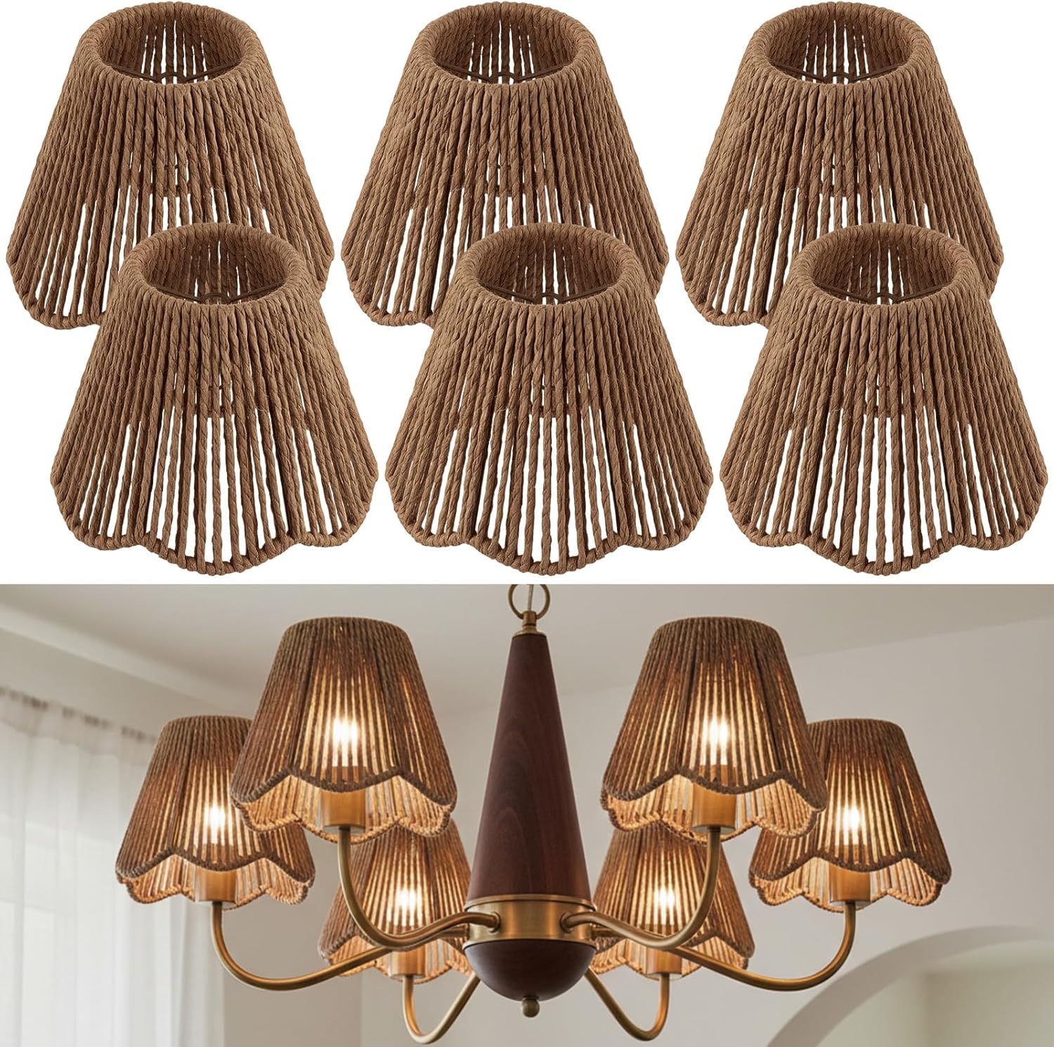 Features: Measuring approximately 3 x 5 x 6 inch, the natural rattan lampshade strikes an ideal balance between presence and subtlety. Its compact yet impactful size makes it suitable for various settings. With its innovative and elegant design, the vertical striped lamp shade is more than just a source of light, it's a statement piece. Its intricate patterns and natural aesthetics create an inviting atmosphere. Specifications: Material: paper vine Color: wood color Size: about 3 x 5 x 6 inch Package includes: 3 x Natural rattan lampshade Notes: Manual measurement, please allow slight errors on size. The color may exist a slight difference due to different screen displays