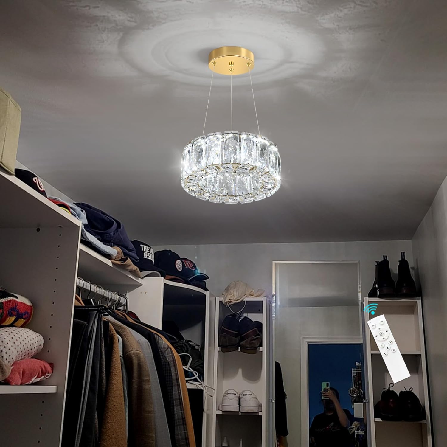 Transform your space with this stunning modern crystal chandelier that combines contemporary design with timeless elegance. The sleek ring design features sparkling crystal elements that create a captivating play of light and shadow. This versatile pendant light comes with adjustable height capabilities, allowing you to achieve the perfect positioning for your room. The dimmable LED technology lets you set the perfect ambiance, from bright task lighting to soft, atmospheric glow. Finished in sophisticated black, this fixture makes a striking statement whether suspended above a dining table, illuminating a living room, or adding glamour to a bedroom. The chandelier's modern ring design offers both dramatic visual impact and practical illumination, making it an ideal choice for those seeking to blend luxury with contemporary style.