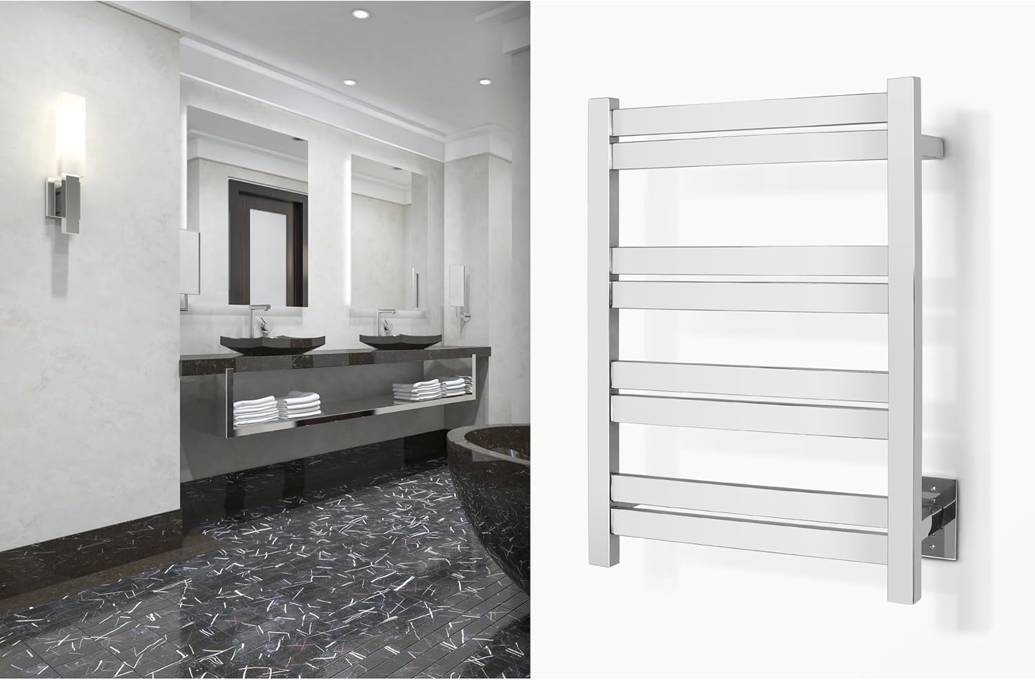 | Item Type Name | WarmlyYours TWS6-MPL08PH 8-Bar Maple Electric Heated Bath Towel Warmer Rack, Hardwired, Wallmountable, Stainless Steel, Polished |