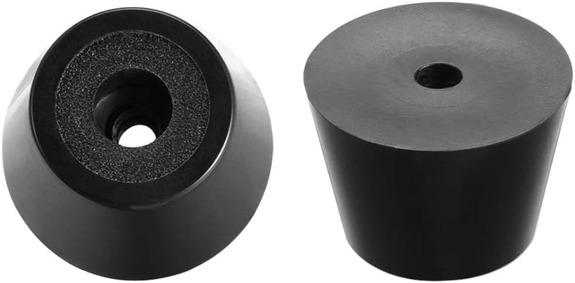 Features:1.The rubber feet Buffer with a metal washer, more durable and extend the service life.2.The tapered rubber feet have a through-hole and a recess for mounting with screws(screws not included). Description:1.The rubber feet Buffer with high elasticity, ageing stable, flame retarded, corrosion resistant and antistatic.2.The rubber feet can protect your beautiful hardwood, ceramic tile and linoleum floors from scratches and save your furniture feet, also can keep your furniture from moving or sliding around. 3.The rubber feet Buffers are used for the cutting board, furniture, instruments, display shelf, machinery equipment, experimental equipment, distribution box, guitar bass amplifier and mechanical equipment, etc. Specifications:Height: 40mm / 1.57-inchTop Diameter: 28mm / 1.1-inchBottom Diameter: 40mm / 1.57-inchTop Hole Diameter: 13mm / 0.51-inchBottom Hole Diameter: 7mm / 0.28-inch Package Content:12pcs x Rubber Feet Buffer Notes:1. Variability of 1-2mm is possible due to the measurement process.2. Due to the light and screen setting difference, the color of the item may be slightly different from the pictures.3. Please check your furniture leg dimension to fit the furniture feet cover before buying this item.4. If mind the smell, you can leave them in an air circulate place until the smell is over before using it.