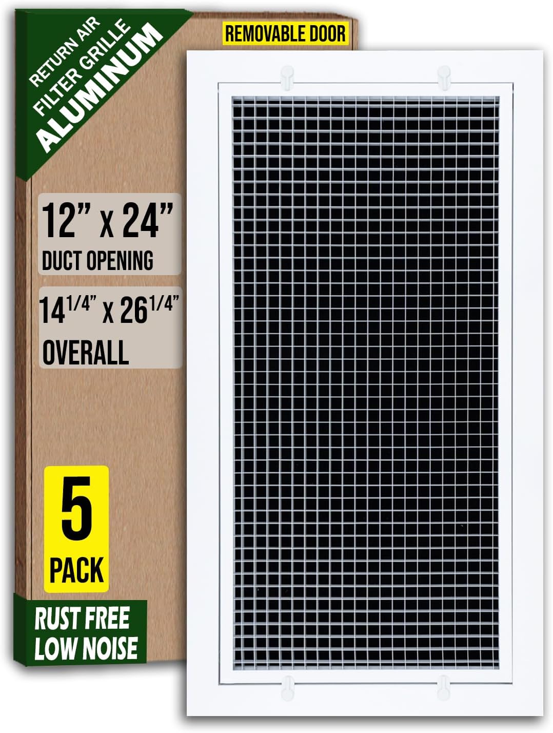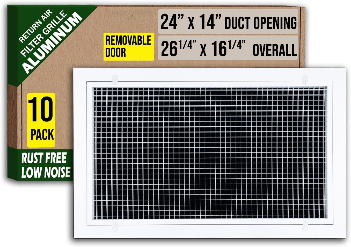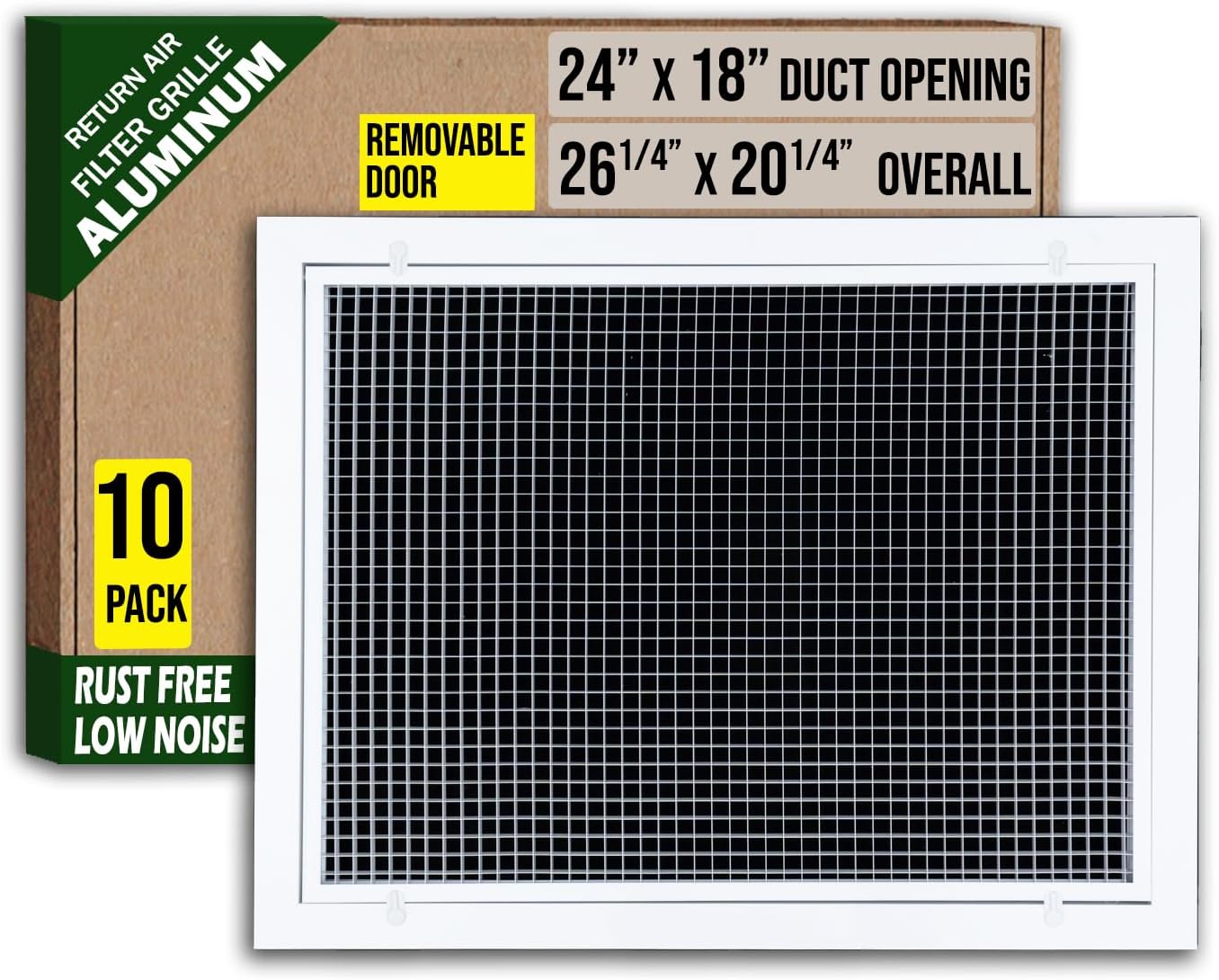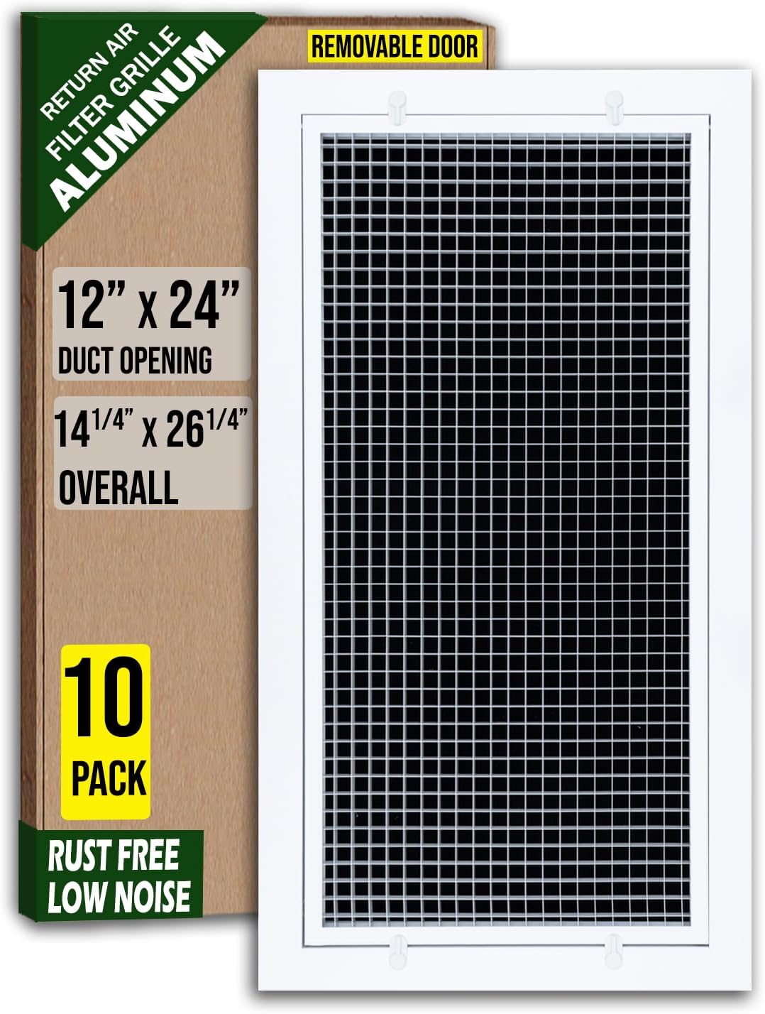 12 x 24 Aluminum Eggcrate Return Air Filter Grille for Sidewall and CeilingIntroducing our Aluminum Eggcrate Return Air Filter Grille for Sidewall and Ceiling. A sophisticated blend of form and function to elevate your indoor air circulation experience. Here's why it stands out:Experience significant cost savings on your energy bill with our Eggcrate Cube Core design, boasting the highest airflow efficiency. Improve ventilation while preserving your HVAC unit's efficiency. Besides,high airflow capacity provides low noise.Crafted for durability, our vent cover features an aluminum frame and aluminum Cube Core, guaranteeing rust-free longevity. Invest in a product designed to maintain the integrity of your air ventilation system over time.Enjoy not only functionality but also elegance with our vent cover's smooth, shiny, and scratch-resistant powder-coat finish. Resembling a freshly waxed surface, our product enhances the aesthetic appeal of your HVAC unit while performing exceptionally.Our Filter Grille Plastic Latch features an Intuitive Access Design, allowing for effortless operation without the need for a screwdriver. Experience convenience and ease of use with this intuitive feature.Upgrade your air ventilation system with the Handua 12x24 Cube Core Rust Proof Eggcrate Vent Cover Grill - a blend of efficiency, durability, and elegant design for sidewall and ceiling installations.