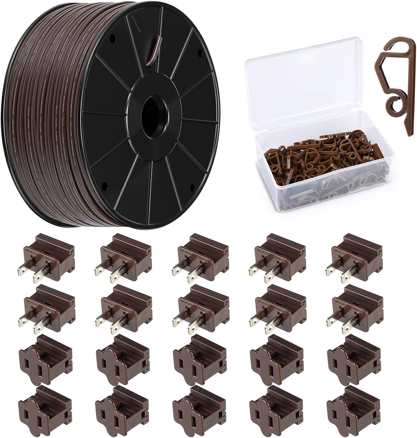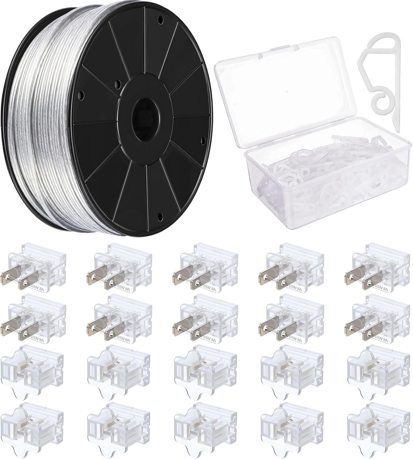 • Complete Holiday Solution: the essential Christmas set includes everything you need for festive lighting: 1 pc 500ft SPT-1 electrical wire, 100 pcs light clips, and 40 pcs slip plugs (20 male and 20 female), making it suitable for indoor and outdoor light decorations