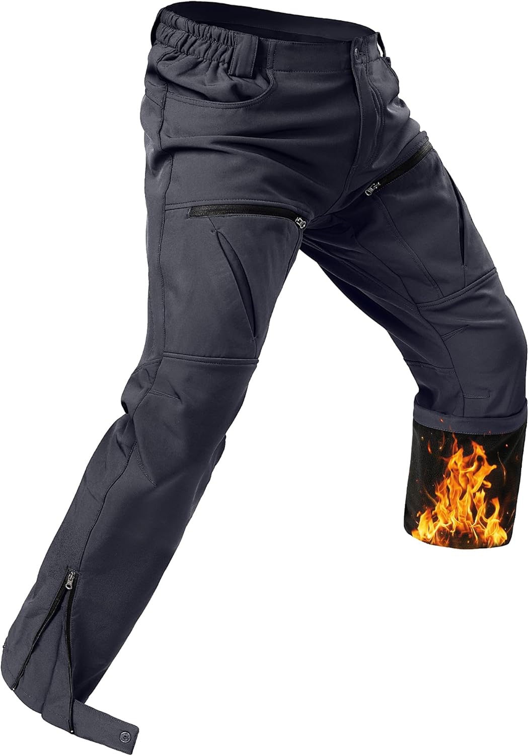 The fabric adopts a multi-layer structure to provide you with protection in extreme environments and cold weather. The waterproof soft shell and fleece lined fabric keeping dry while providing a warm and soft wearing experience. Waterproof fleece lined work pants for men are made of nylon, spandex and polyester, featuring, tear resistance and wear resistance, providing excellent comfort in various scenarios.Mens hiking snow pants have two portable deep pockets and two large zipper pockets. The zipper pocket has been designed for expansion, providing ample storage space for personal items.The trouser legs are equipped with adjustable buttons and zippers.The elastic waist ensure the comfort in casual daily life and winter outdoor activity.Yevtzl mens snow thermal pants suitable for daily wear. Whether it's work hiking, skiing, snowfall, camping, cycling, hunting or fishing, Yevtzl winter pants are the ideal choice.