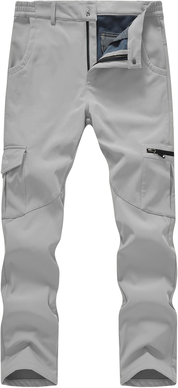 Gopune Mens winter pants great for hiking,fishing,camping,cycling,mountaineering,hunting,climbing,snowb oarding,traveling etc Gopune Men's Winter Water Resistant Snow Ski Pants 1.Fleece Lining 2.Water Resistant Softshell 3.Elastic Waist 4.Windproof/Waterproof 5.6 Cargo Pockets This hiking pants with waterproof coating and inner layer made of warm fleece,helps you stay warm and dry all day.Warm fleece lined with lightweight.Double waterproof hiking snow pants great for climbing fishing hunting wnowboarding mountain