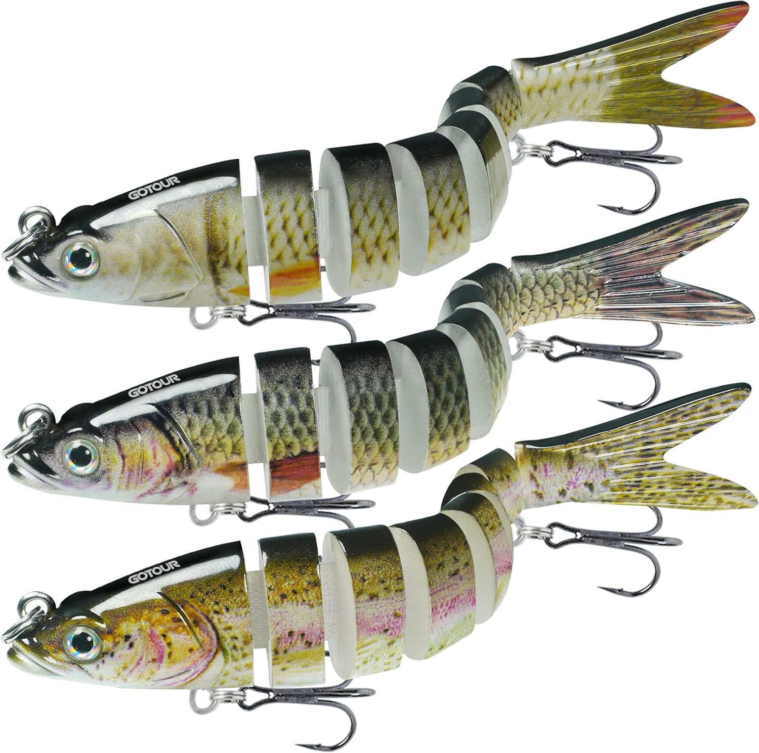GOTOUR Fishing Lures Bass Fishing Gear Including Crankbaits Spinner Soft Worms Jigging Hooks, Jig Head Fishing Weights for Freshwater Saltwater, Fishing Gifts for Men