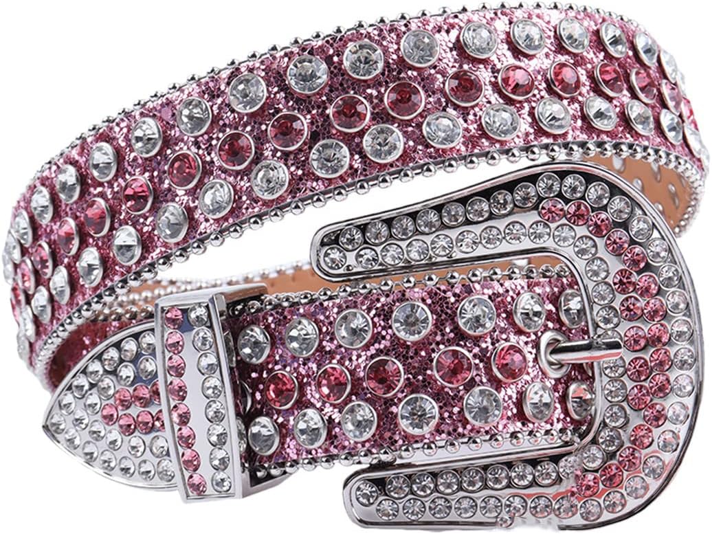 Belts Material:PUDepartment Name:AdultGender:UnisexBelt Width:3.8CmBuckle Length:9CmItem Type:BeltsBuckle Width:8CmProduct Name:Rhinestone BeltStyle 1:FashionStyle 2:VintageStyle 3:Diamond BeltStyle 4:GorgeousFor:Women/MenBelt Size:38/42/44//46/48 InchBelt Length:100/105/110/115/120 CmColour:PinkPattern Type:SolidItem Type:BeltsItem:Studded Belt For Women Men