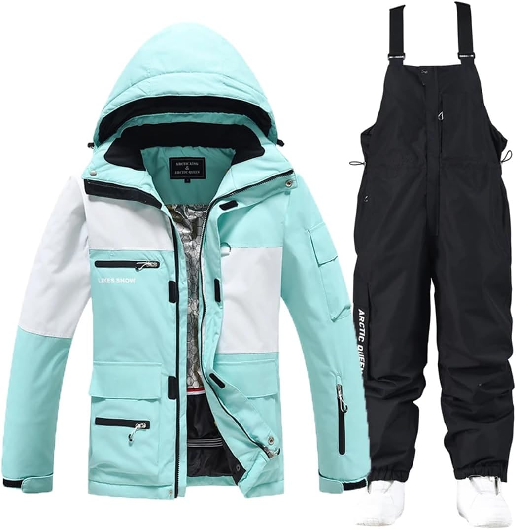 The ski suit is made of technical fabrics, and the surface of the clothes is suitable for grade 4 waterproof treatment. It can reduce the absorption of water by the fabric, so that water droplets can be easily thrown off. There is a transparent PU film under the fabric. This membrane can also help fabrics reduce moisture penetrationDesign:Detachable hat,the cuff velcro and the hem wind skirt's design,which could keep warm and protect you from the wind(cold) when you are going any outdoors'activties,such as,skiiing,snowboard,hiking,etc.Besides,there are large inside pocket and inside pocket with earphone hole in it,which you could place your earphone and your smartphonePleasing temperature:You could notice there are hem windproof skirt buckle and the detachable hat,which bring you a comfortable temperature and you won't feel too cold or too hotBreathable and Quick-Drying:Breather mesh zipper design,you can always keep cozy and dry during exerciseJacket1) Smooth & Durable YKK Zipper closure2) Detachable and adjustable hooded, keep your head warm3) Adjustable cuffs, stretchable glove with thumb hole4) Inside windproof snap powder skirt, internal drawcord hem5) Mesh pocket and Zipper pocket to put your phone, or your small accessoriesPants1) Adjustable waist , allows the pant to fit comfortably2) Side pockets and back pockets to hold your accessories3) Windproof bottom and the elastic trouser legs, effectively prevent wind and snowSize notes: smaller than standard, choose 1-2 bigger size. Please refer to our size chart and choose the appropriate size before ordering