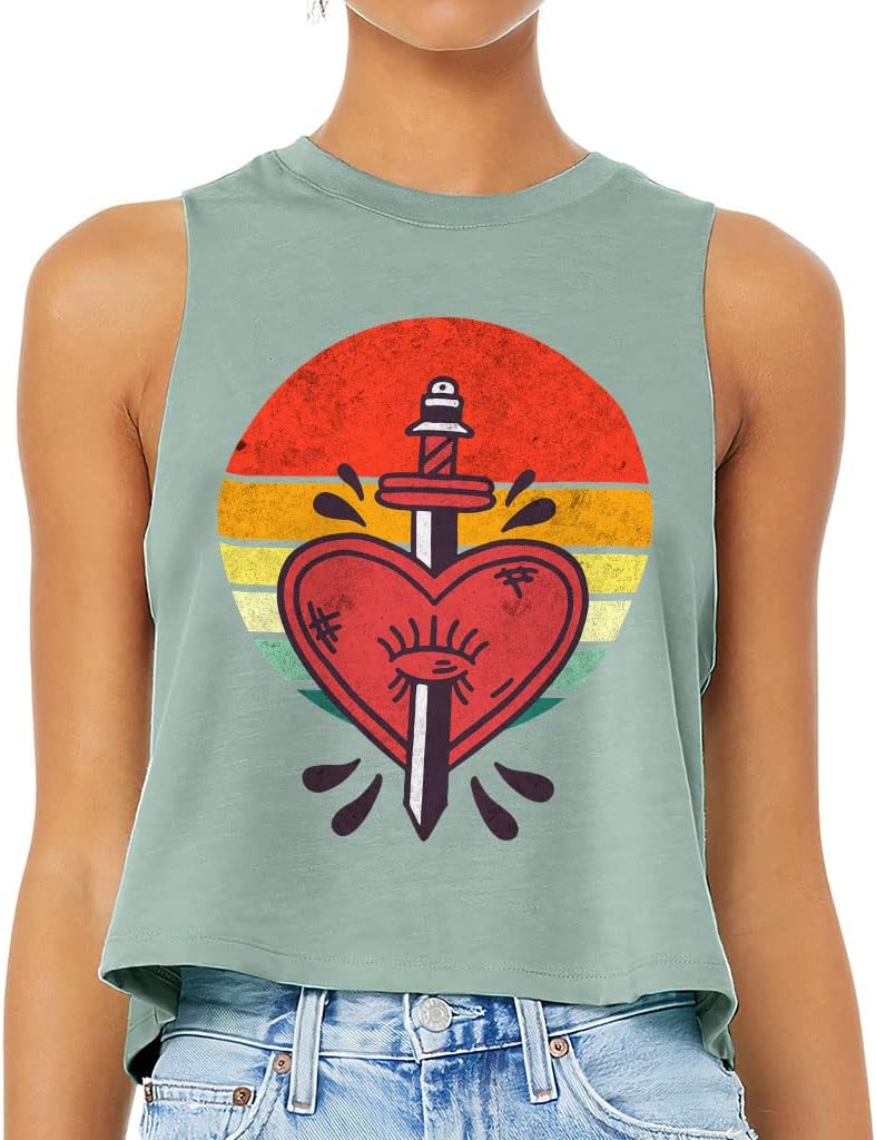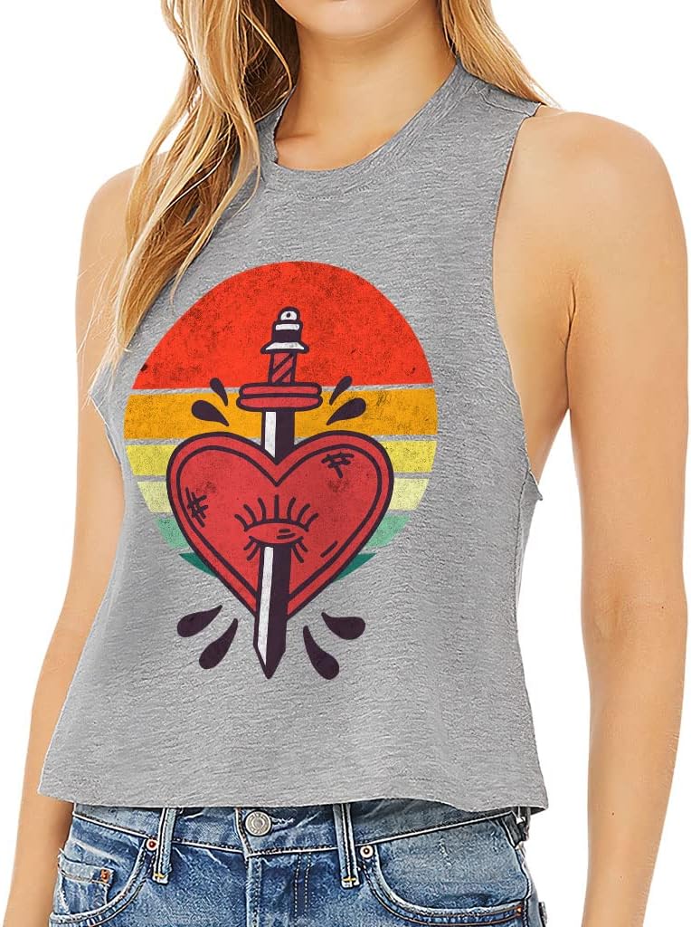 Cute and flattering Heart and Sword Racerback Cropped Tank is suitable for most indoor or outdoor activities, such as gym, yoga, running, hiking, beach or relaxing around the house. Pair Illustration Women's Tank with your favorite sports bras, especially strappy ones, and high-waisted leggings, then you will enjoy cool and comfortable exercise throughout the summer.