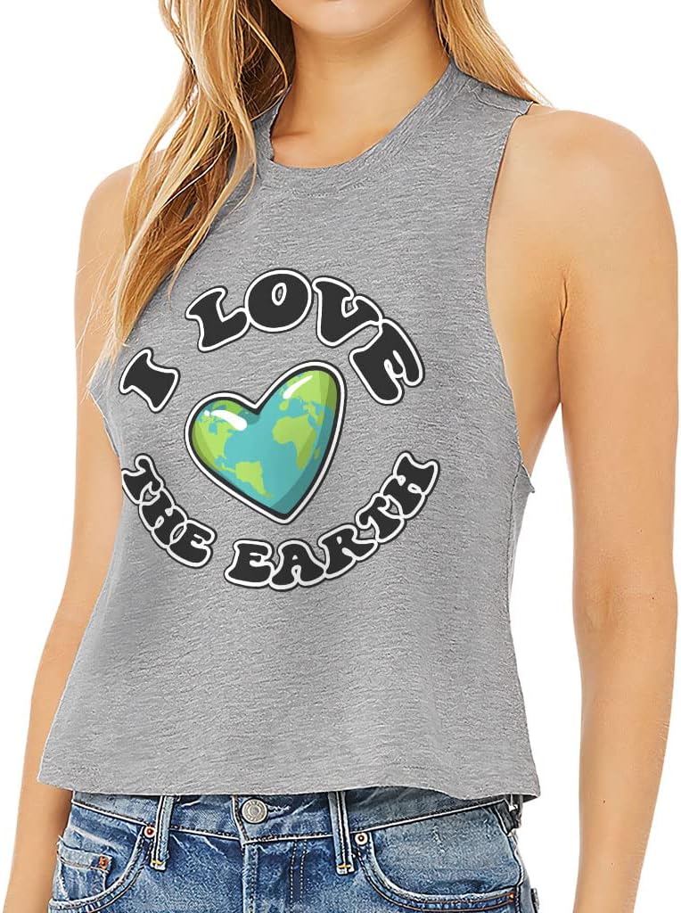 Cute and flattering I Love The Earth Racerback Cropped Tank is suitable for most indoor or outdoor activities, such as gym, yoga, running, hiking, beach or relaxing around the house. Pair Planet Women's Tank with your favorite sports bras, especially strappy ones, and high-waisted leggings, then you will enjoy cool and comfortable exercise throughout the summer.