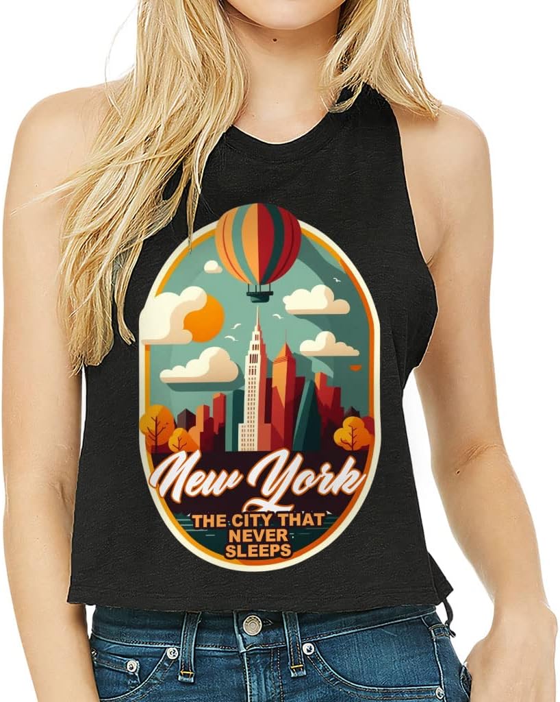 Cute and flattering City That Never Sleeps Racerback Cropped Tank is suitable for most indoor or outdoor activities, such as gym, yoga, running, hiking, beach or relaxing around the house. Pair New York Women's Tank with your favorite sports bras, especially strappy ones, and high-waisted leggings, then you will enjoy cool and comfortable exercise throughout the summer.