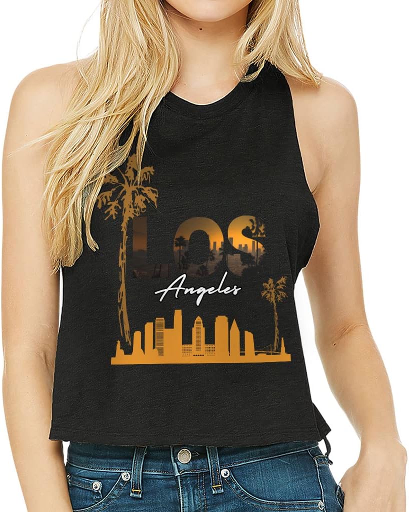 Cute and flattering Los Angeles Racerback Cropped Tank is suitable for most indoor or outdoor activities, such as gym, yoga, running, hiking, beach or relaxing around the house. Pair US Print Women's Tank with your favorite sports bras, especially strappy ones, and high-waisted leggings, then you will enjoy cool and comfortable exercise throughout the summer.