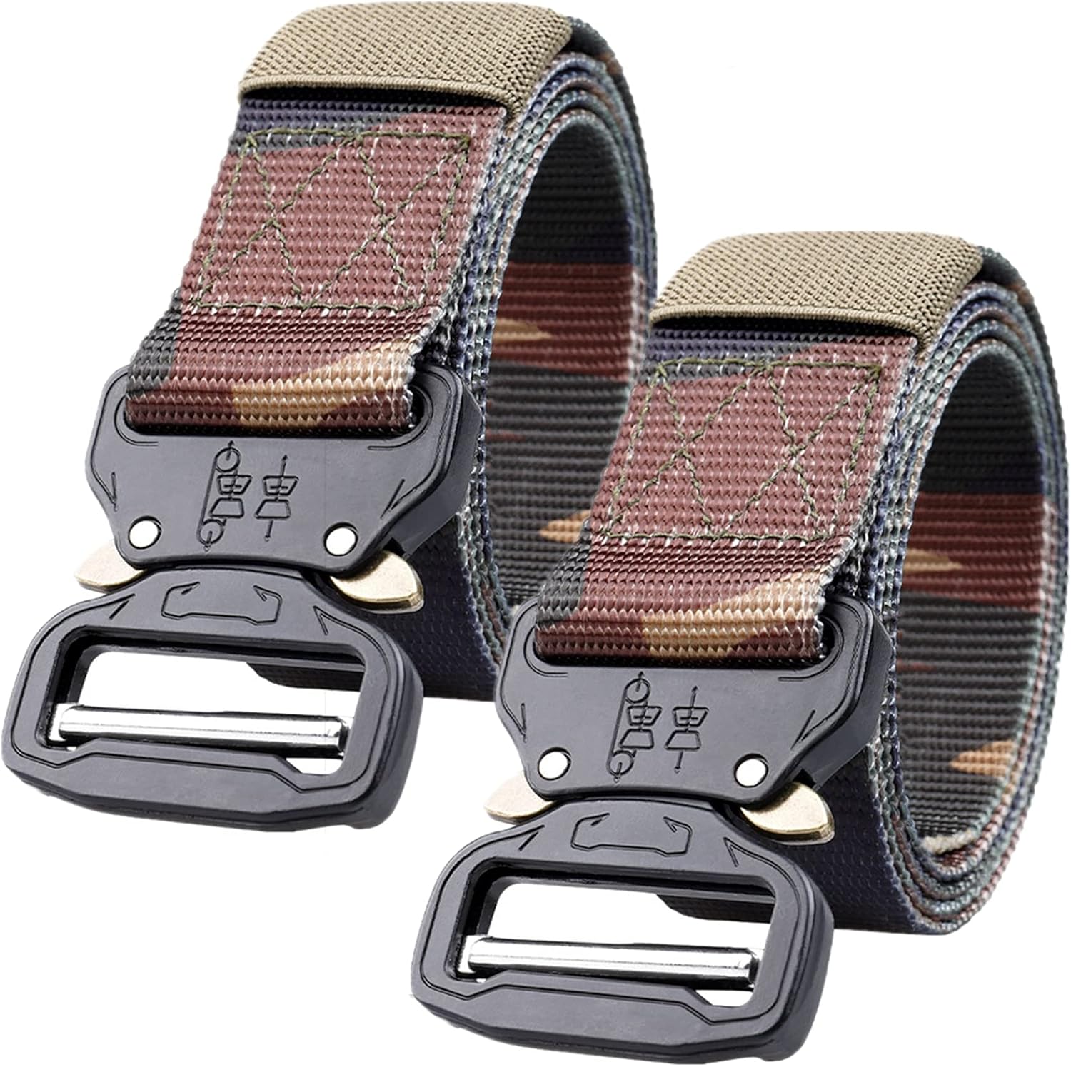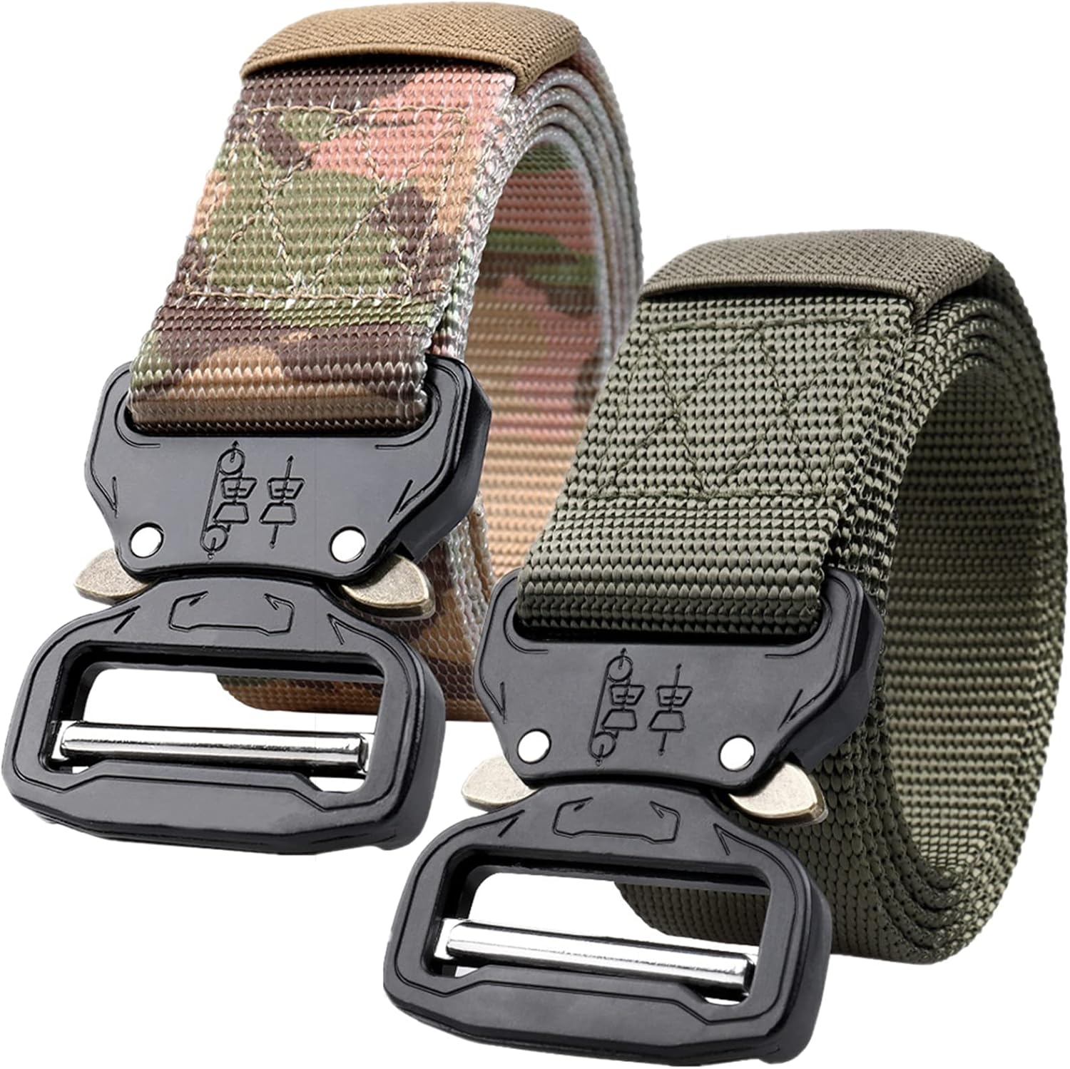 Belt Main Material: nylon strap + alloy buckle Strap width: 1.5" (3.8cm) Belt length: 115cm(45"), 125cm(49"), 135cm(53"), 145cm(57"), 155cm(61"), 165cm(65") Buckle Size: 6 x 5cm(L x W) The military belt makes with lightweight and wear-resisting nylon material that has a strong evaporation of sweat, more comfortable and breathable, feel more flexible, easy to dry in air. Robust belt for cycling If you are cycling, you can hang the lock on this belt without loosening or damaging the belt. Tactical belts for mountaineering Keep yourself good for outdoor activities and keep yourself flat under the waist belt of the backpack. It is a good choice for daily hiking and mountaineering. Tactical Duty Belt for Military Run perfectly with a tactical combat belt and for tactical training. You don't have to worry if a buckle runs through the forest. Suits for many outdoor activities Durable and comfortable belt for your hunting equipment. The tactical locking remains secure in any case. Package include: 2 * belts Note: 1. Manual measurement, there may be 1-3cm error 2. The display effect is different, there may be slight color difference between the product and the picture, please refer to the actual product.