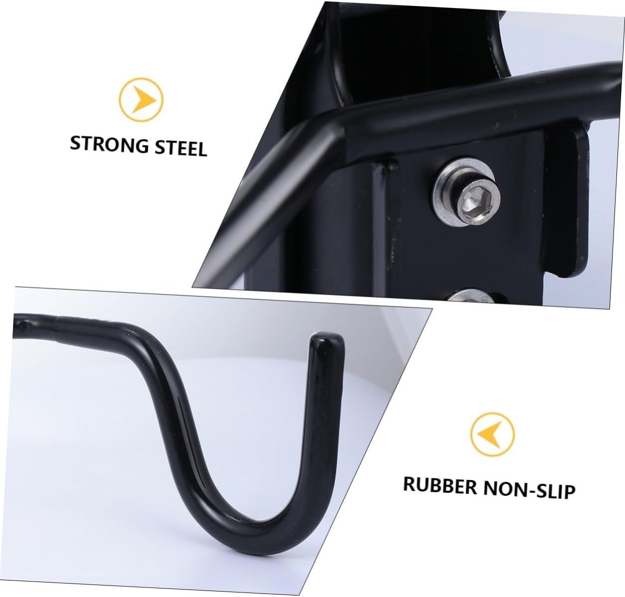 Package Include 1 x bike wall hook Features - Size: 37.00 x 40.00 x 16.00cm/ 14.54 x 15.72 x 6.29 inch. - Material: Steel and rubber. - Color: Black. -Product Info:Bicycle rack - It is designed to fit almost all bikes, including most road bikes and most mountain bikes, with different handlebar size. - Bike rack is designed to hanging the bike on wall to save space and out of the way. Please mount on or cement wall Trailer Rack. - The arm hanger has padded rubber to protects against paint damage Bike Wall Hook. - Just hanging your without taking up an inch of floor space, all you need is a blank wall Bike Hook. - Wall mount bike racks are used to store and elegantly display your bike like works of art hanging in any room.Goods DescriptionHome Supplies Drywall or plasterboard walls? Only if there are studs behind them.Trailer Rack Just hanging your without taking up an inch of floor space—all you need is a blank wall on which walls to install it? Brick or concrete walls? These types are for mounting this set of 2 bike storage racks.Wall-mounted Indoor Rack Squeezing your bikes into your utility room or leaving it exposed to rain will be of the past