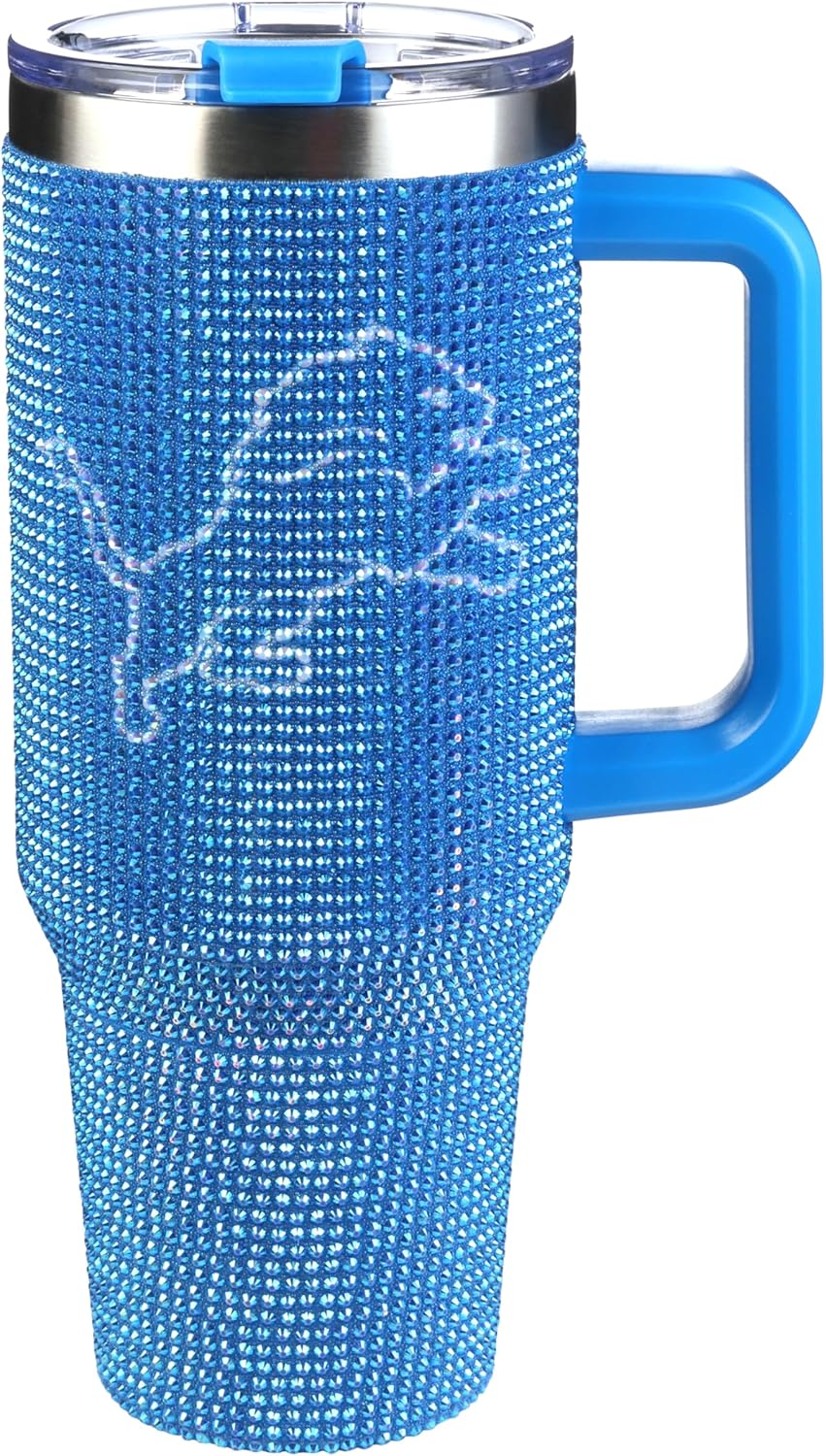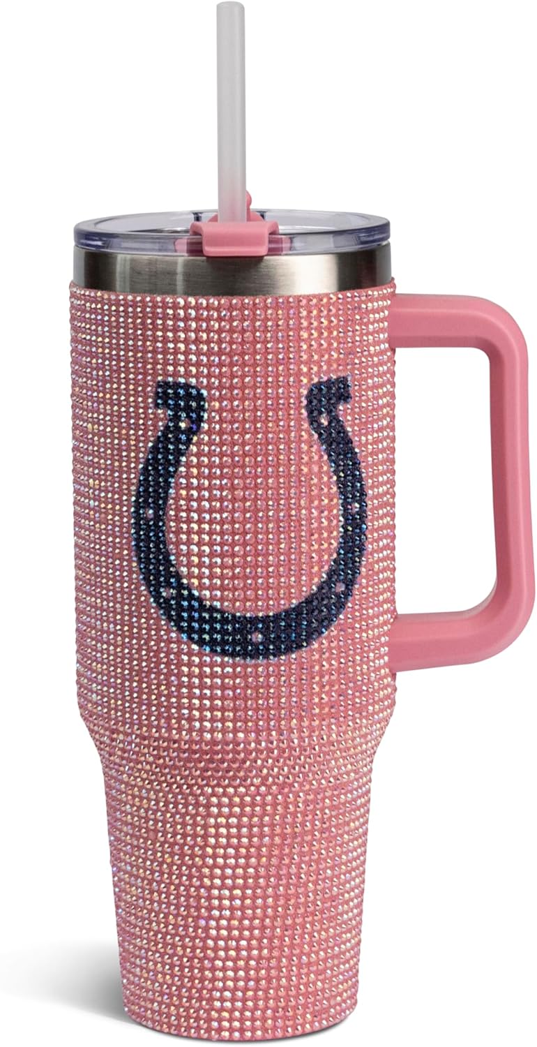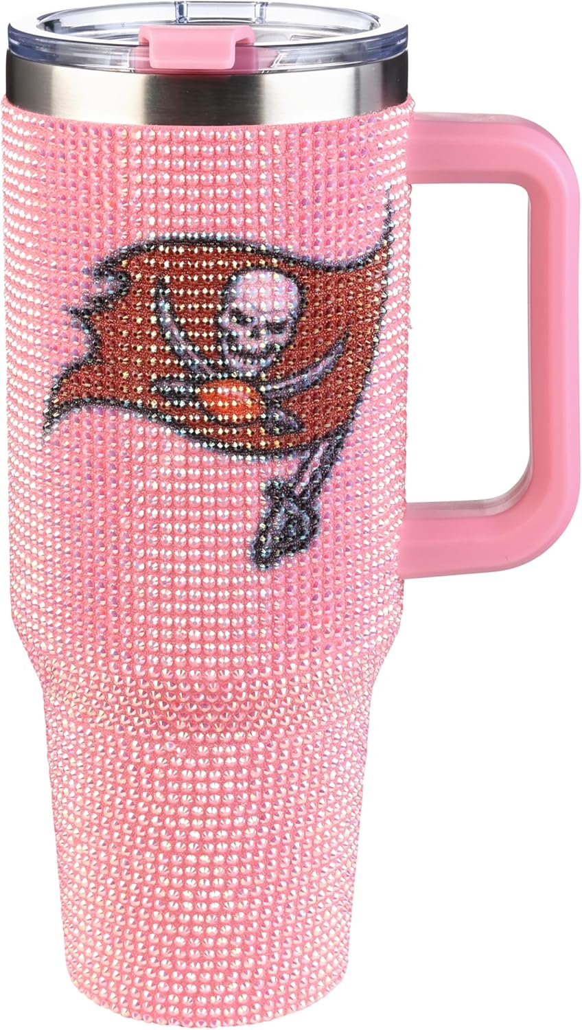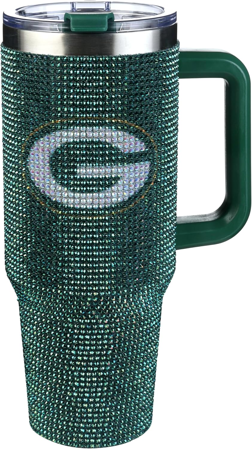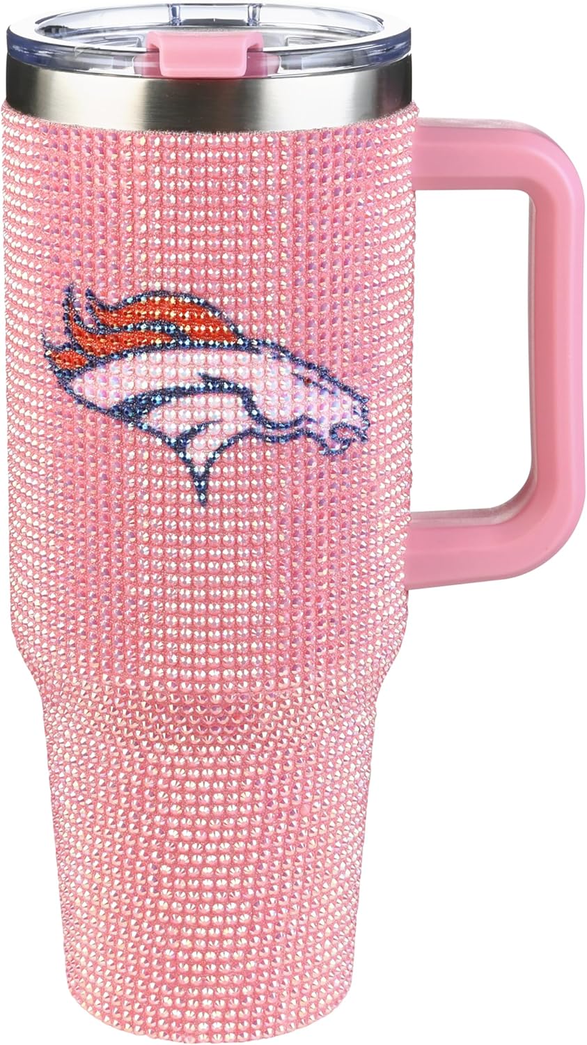 Enhance your game day experience with The Memory Company's 40oz Team Color Bling Game Day Tumbler, featuring the iconic team logo adorned with dazzling rhinestones. This premium drinkware combines style with exceptional functionality to keep you refreshed throughout the day. Key Benefits: • Superior Temperature Control: Double-wall vacuum insulation maintains your beverage temperature - hot or cold - for hours • Durable Construction: Made from high-grade stainless steel that resists dents, scratches, and corrosion • Practical Design: Fits standard cup holders and features a comfortable grip for easy handling • Leak-Resistant Technology: Secure lid with sliding closure prevents spills during transport • Easy Maintenance: This product is not dishwasher safe. Easy hand wash is recommended Perfect for tailgating parties, office use, outdoor activities, or daily commuting, this tumbler offers versatile functionality while displaying your team spirit. The sophisticated rhinestone embellishments add a touch of glamour to the classic team logo, making it an eye-catching accessory for any fan. The 40oz capacity ensures you stay hydrated throughout the day, whether you're enjoying hot coffee during morning meetings or ice-cold beverages at the stadium. The sweat-free exterior prevents condensation, keeping your hands dry and surfaces protected. Officially licensed by the NFL, this premium tumbler makes an impressive gift for sports enthusiasts, collectors, or anyone who appreciates high-quality drinkware. Each tumbler comes beautifully packaged, ready for gift-giving on any special occasion.