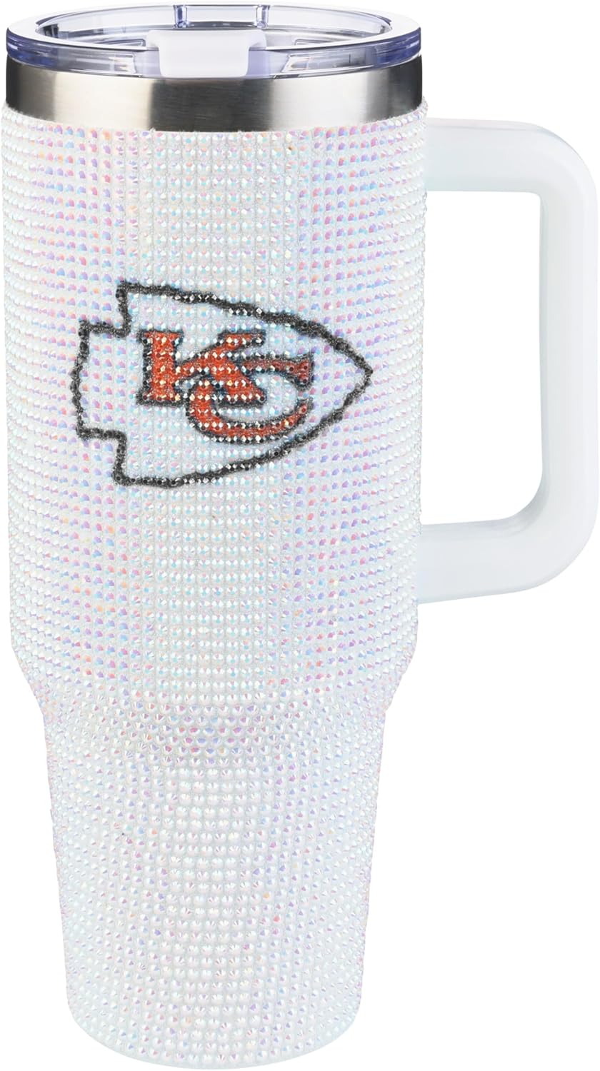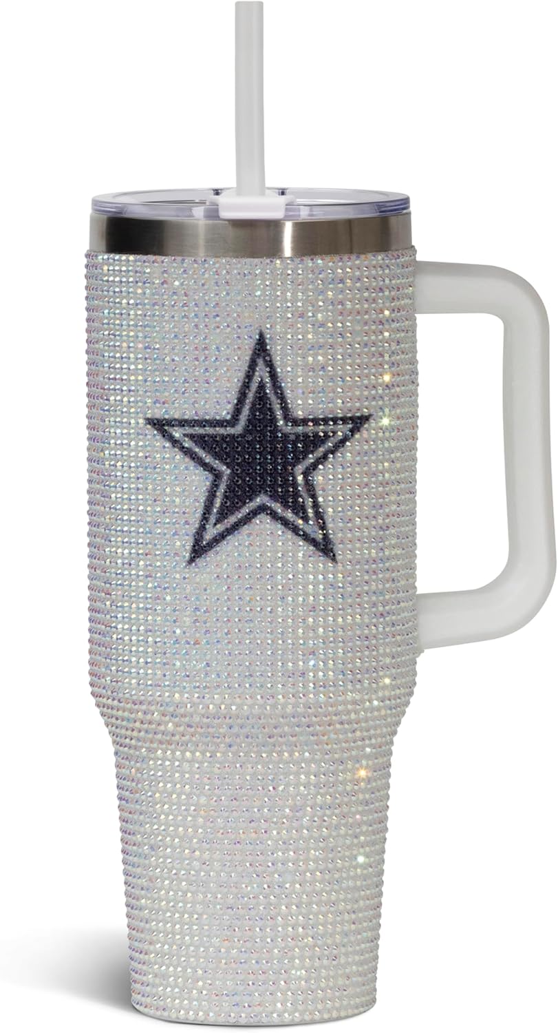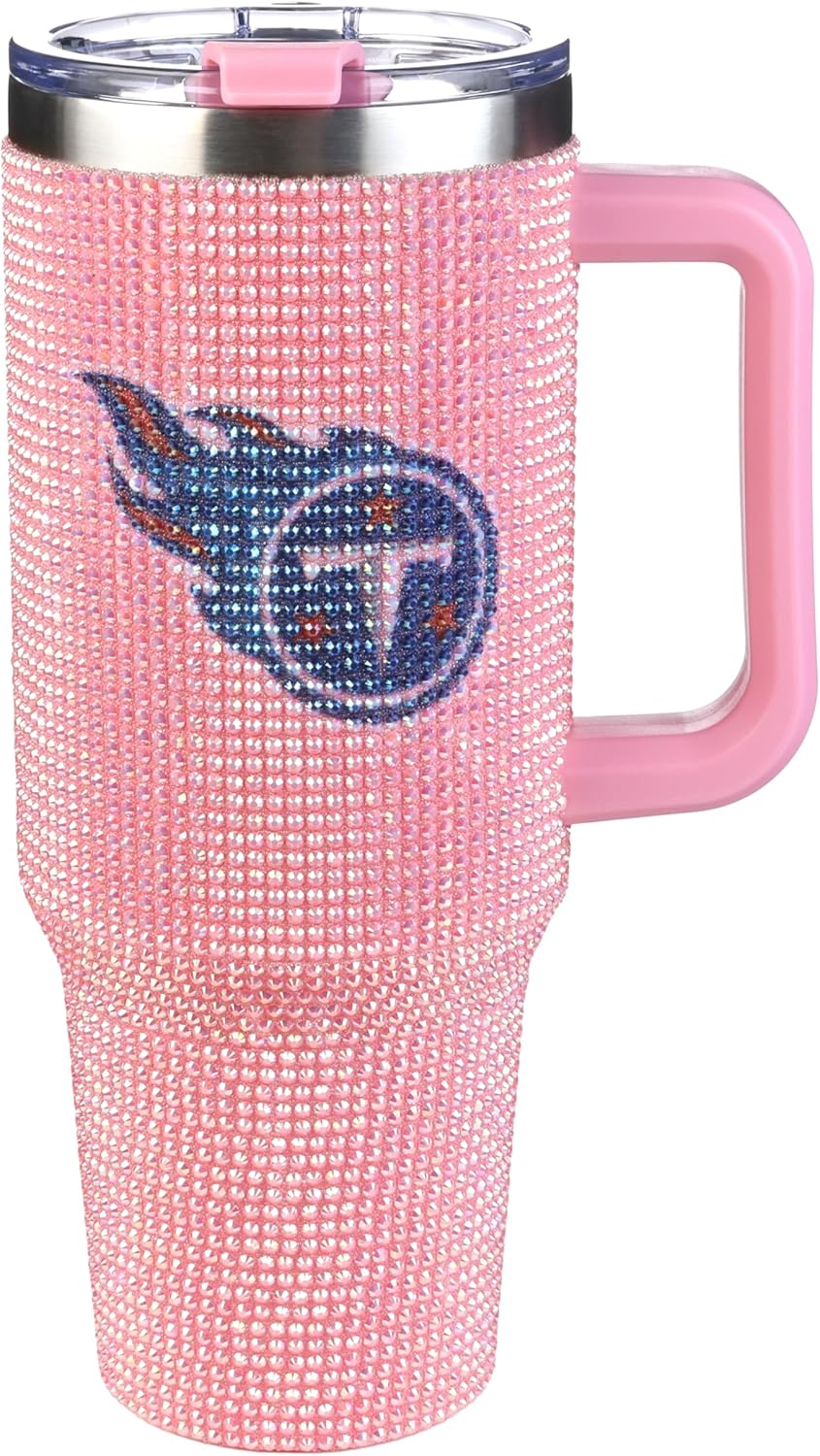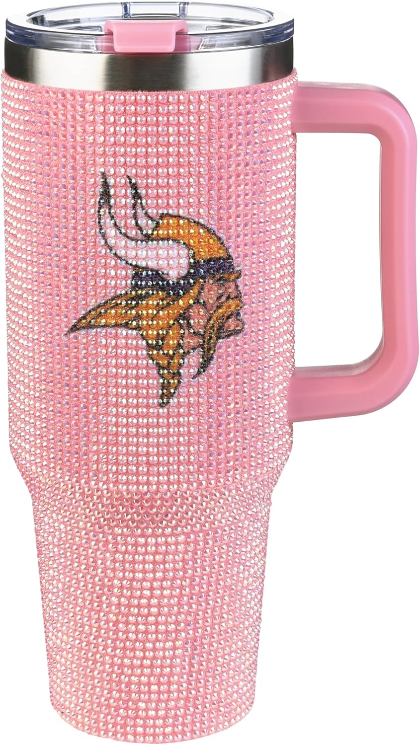 Enhance your game day experience with The Memory Company's 40oz Team Color Bling Game Day Tumbler, featuring the iconic team logo adorned with dazzling rhinestones. This premium drinkware combines style with exceptional functionality to keep you refreshed throughout the day. Key Benefits: • Superior Temperature Control: Double-wall vacuum insulation maintains your beverage temperature - hot or cold - for hours • Durable Construction: Made from high-grade stainless steel that resists dents, scratches, and corrosion • Practical Design: Fits standard cup holders and features a comfortable grip for easy handling • Leak-Resistant Technology: Secure lid with sliding closure prevents spills during transport • Easy Maintenance: This product is not dishwasher safe. Easy hand wash is recommended Perfect for tailgating parties, office use, outdoor activities, or daily commuting, this tumbler offers versatile functionality while displaying your team spirit. The sophisticated rhinestone embellishments add a touch of glamour to the classic team logo, making it an eye-catching accessory for any fan. The 40oz capacity ensures you stay hydrated throughout the day, whether you're enjoying hot coffee during morning meetings or ice-cold beverages at the stadium. The sweat-free exterior prevents condensation, keeping your hands dry and surfaces protected. Officially licensed by the NFL, this premium tumbler makes an impressive gift for sports enthusiasts, collectors, or anyone who appreciates high-quality drinkware. Each tumbler comes beautifully packaged, ready for gift-giving on any special occasion.