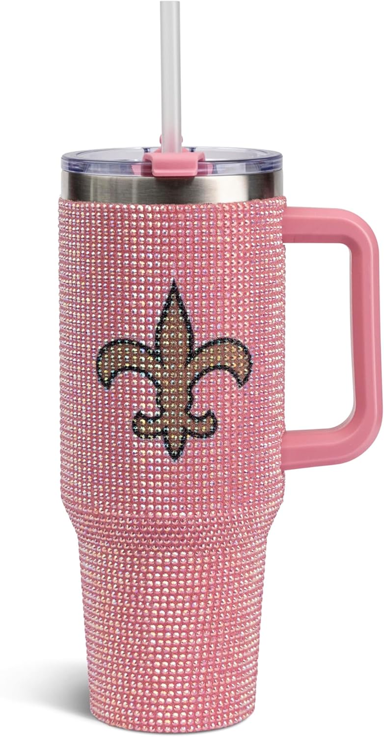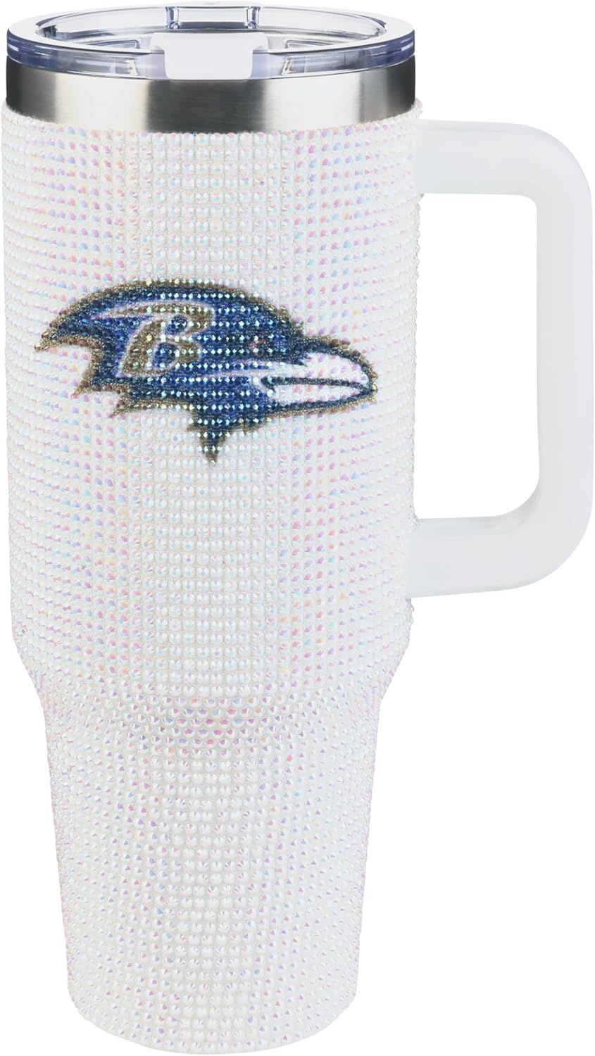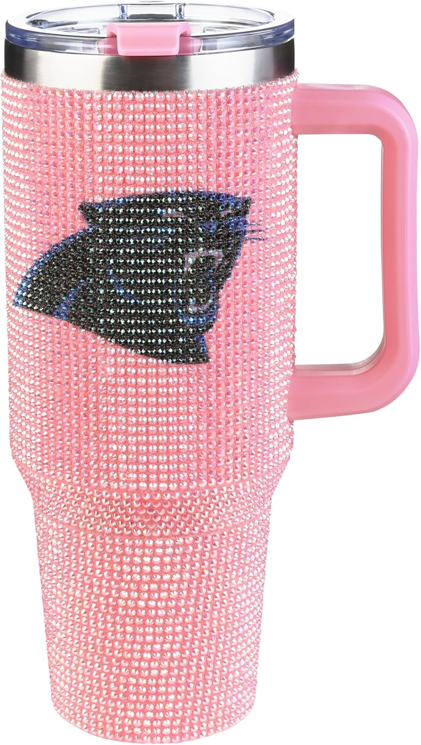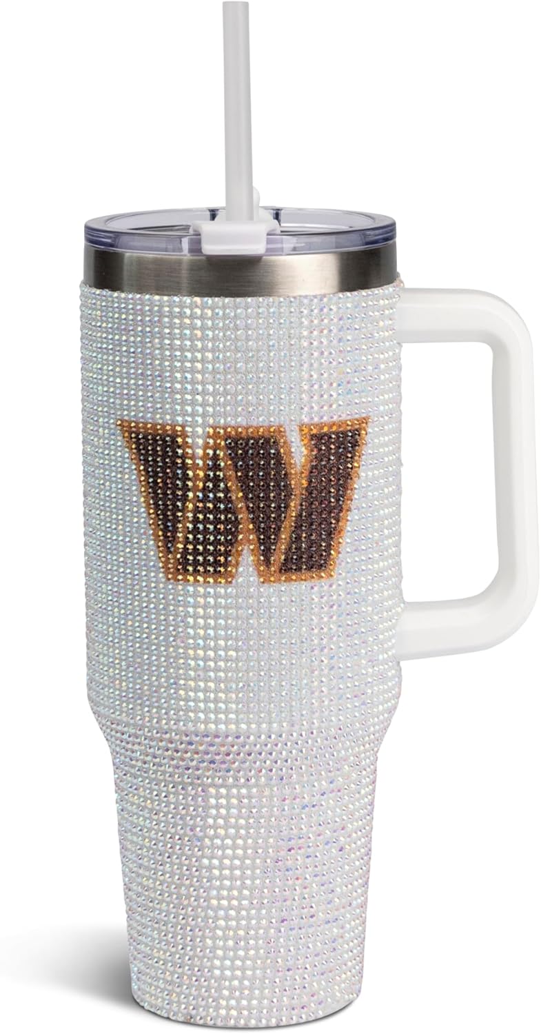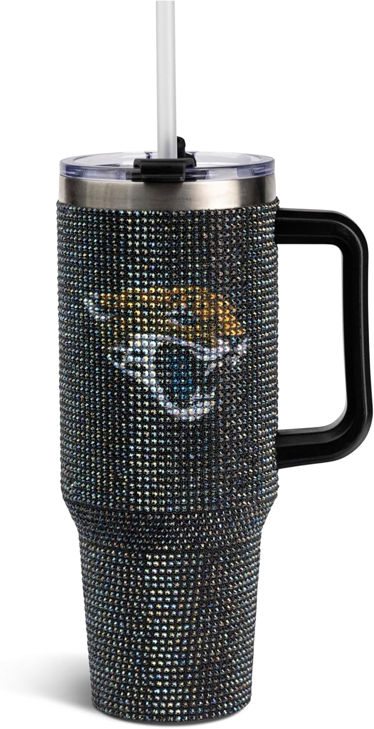 Enhance your game day experience with The Memory Company's 40oz Team Color Bling Game Day Tumbler, featuring the iconic team logo adorned with dazzling rhinestones. This premium drinkware combines style with exceptional functionality to keep you refreshed throughout the day. Key Benefits: • Superior Temperature Control: Double-wall vacuum insulation maintains your beverage temperature - hot or cold - for hours • Durable Construction: Made from high-grade stainless steel that resists dents, scratches, and corrosion • Practical Design: Fits standard cup holders and features a comfortable grip for easy handling • Leak-Resistant Technology: Secure lid with sliding closure prevents spills during transport • Easy Maintenance: This product is not dishwasher safe. Easy hand wash is recommended Perfect for tailgating parties, office use, outdoor activities, or daily commuting, this tumbler offers versatile functionality while displaying your team spirit. The sophisticated rhinestone embellishments add a touch of glamour to the classic team logo, making it an eye-catching accessory for any fan. The 40oz capacity ensures you stay hydrated throughout the day, whether you're enjoying hot coffee during morning meetings or ice-cold beverages at the stadium. The sweat-free exterior prevents condensation, keeping your hands dry and surfaces protected. Officially licensed by the NFL, this premium tumbler makes an impressive gift for sports enthusiasts, collectors, or anyone who appreciates high-quality drinkware. Each tumbler comes beautifully packaged, ready for gift-giving on any special occasion.