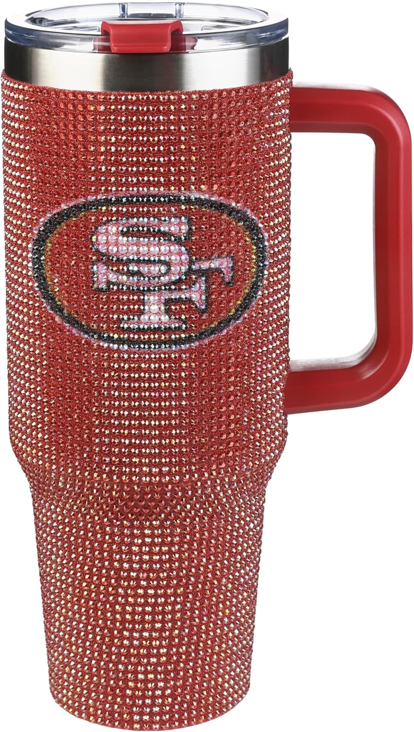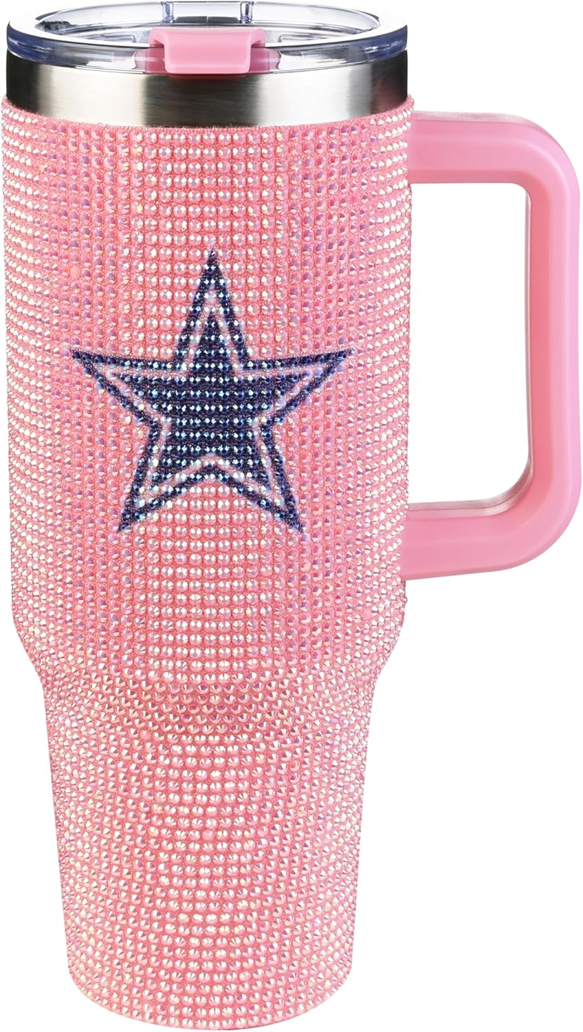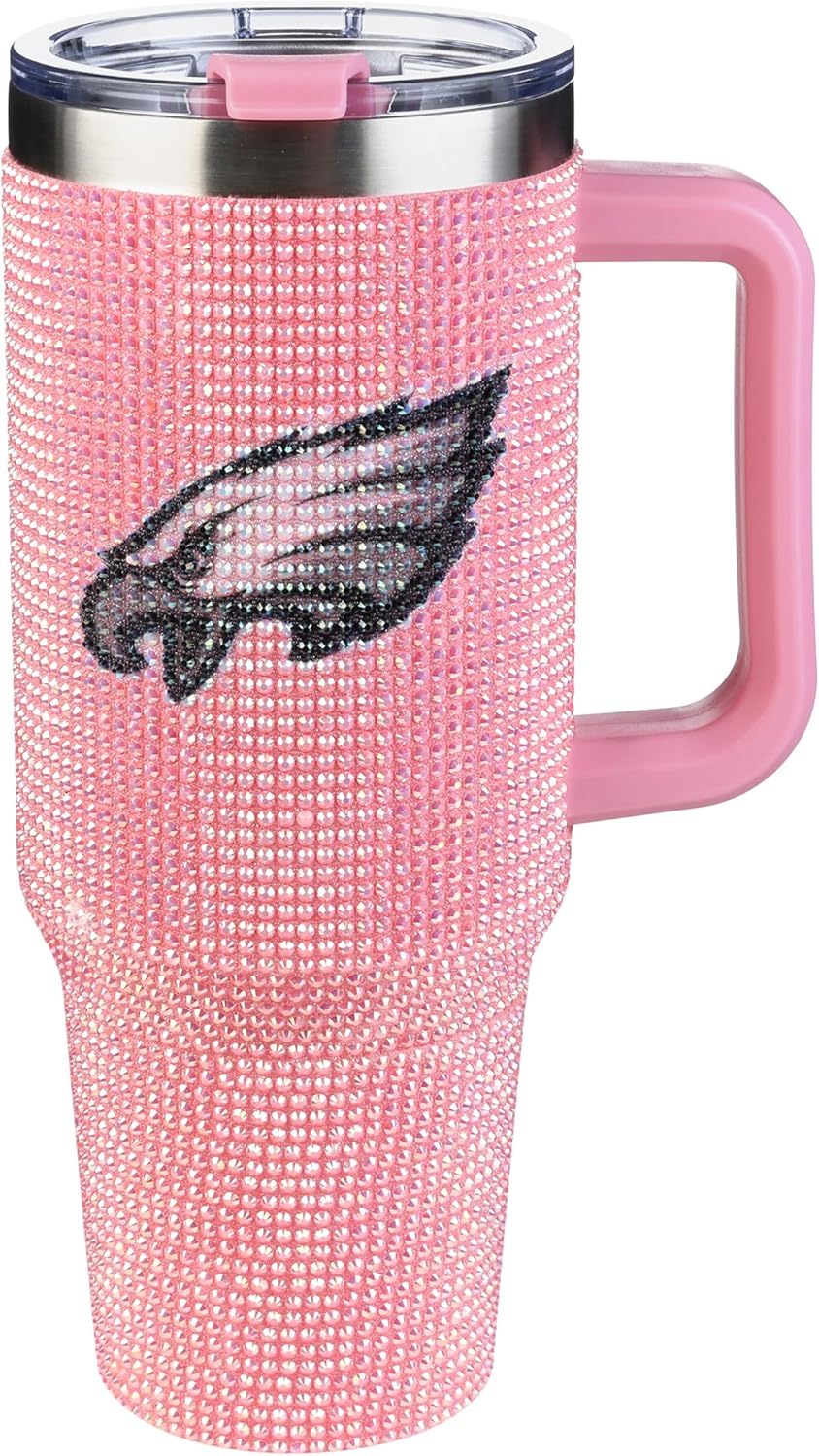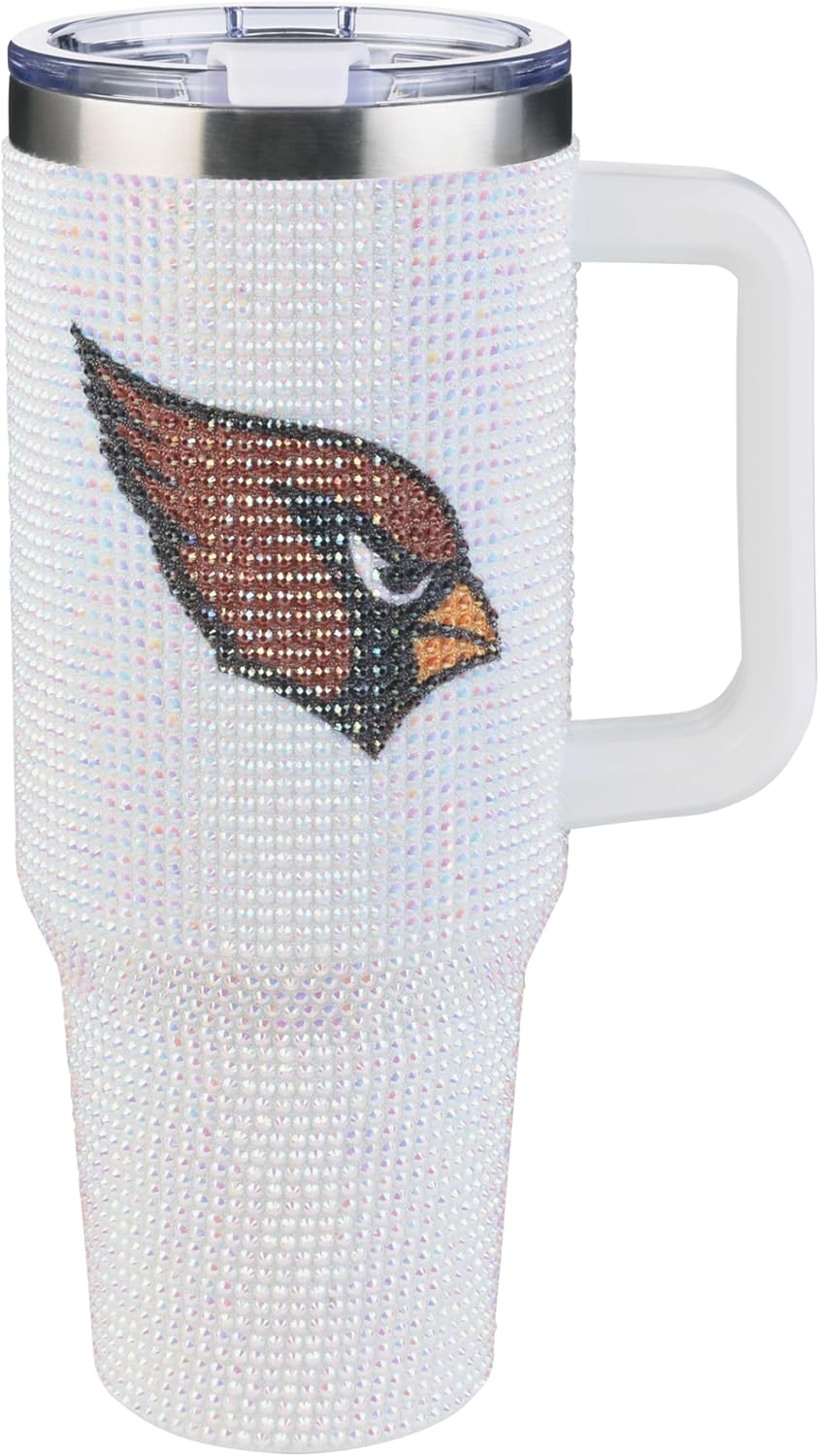Enhance your game day experience with The Memory Company's 40oz Team Color Bling Game Day Tumbler, featuring the iconic team logo adorned with dazzling rhinestones. This premium drinkware combines style with exceptional functionality to keep you refreshed throughout the day. Key Benefits: • Superior Temperature Control: Double-wall vacuum insulation maintains your beverage temperature - hot or cold - for hours • Durable Construction: Made from high-grade stainless steel that resists dents, scratches, and corrosion • Practical Design: Fits standard cup holders and features a comfortable grip for easy handling • Leak-Resistant Technology: Secure lid with sliding closure prevents spills during transport • Easy Maintenance: This product is not dishwasher safe. Easy hand wash is recommended Perfect for tailgating parties, office use, outdoor activities, or daily commuting, this tumbler offers versatile functionality while displaying your team spirit. The sophisticated rhinestone embellishments add a touch of glamour to the classic team logo, making it an eye-catching accessory for any fan. The 40oz capacity ensures you stay hydrated throughout the day, whether you're enjoying hot coffee during morning meetings or ice-cold beverages at the stadium. The sweat-free exterior prevents condensation, keeping your hands dry and surfaces protected. Officially licensed by the NFL, this premium tumbler makes an impressive gift for sports enthusiasts, collectors, or anyone who appreciates high-quality drinkware. Each tumbler comes beautifully packaged, ready for gift-giving on any special occasion.