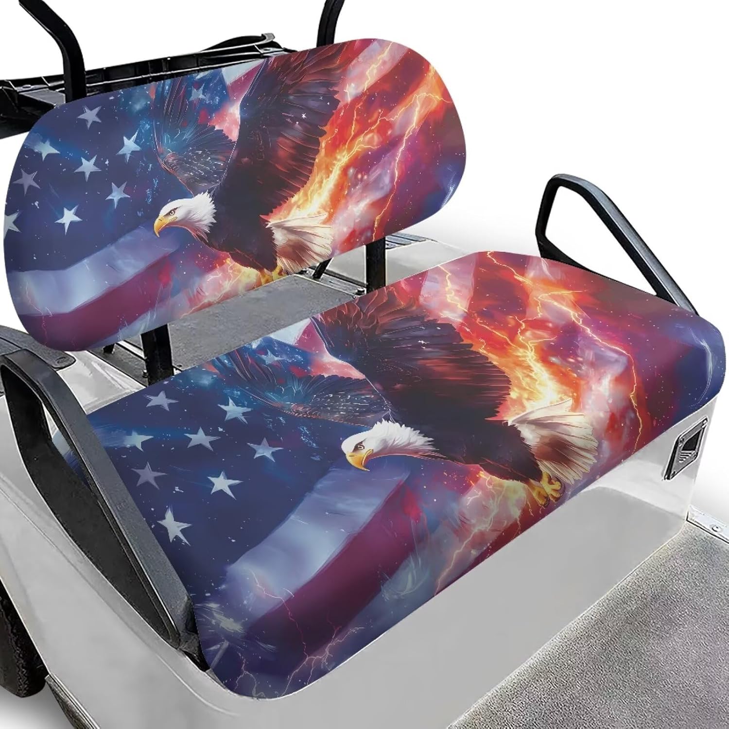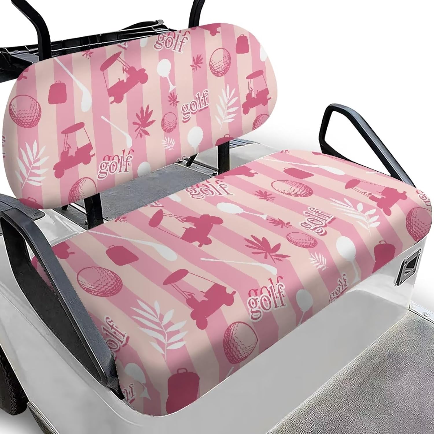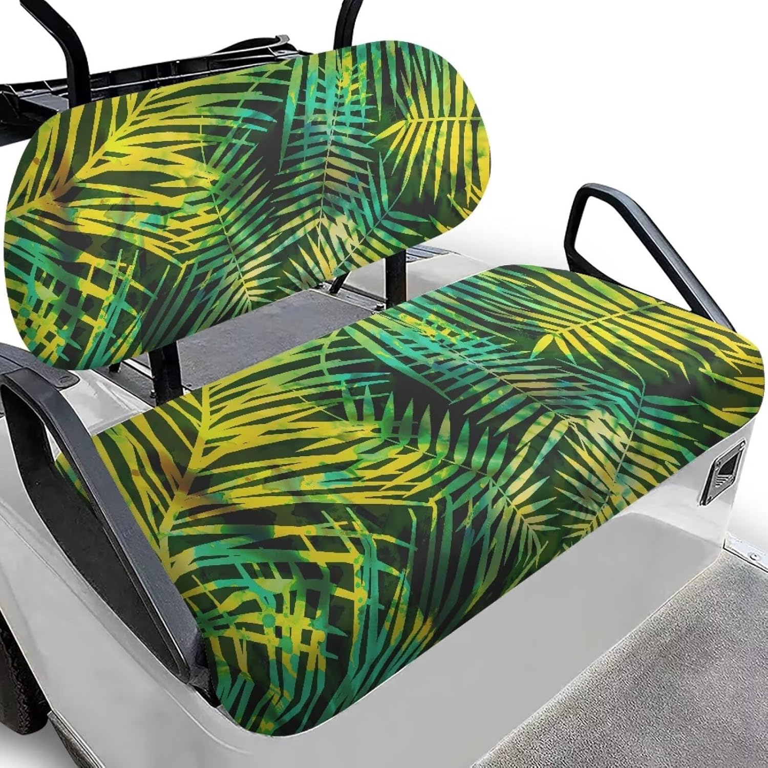 Biyejit Golf Cart Seat Dust Cover Dustproof Sun-Proof Seat Protector All-Season Weather Resistant Front & Rear Seat Protection Fits for Club Car and More 2 Person Seats Golf Carts Production Information Material: Polyester Pattern: Multicolor pattern printed About size: Backrest: 36.6(L) x 3.74(H) x 9.5(W)inches; Bench Seat: 39.76(L) x 3.94(H) x 19.68(W)inches Features: Non-Slip, Anti-hot, Easy Install, Machine Washable Multi-functional: The golf cart seat cover set is made of polyester and spandex. It is lightweight, soft and comfortable, stretchy, breathable and washable. It won't make you feel stuffy when you sit on it in hot summer days, and provides warmth in cool spring, fall and winter, providing more convenience for your outdoor golf activities. Notes Please allow little color difference due to different camera or light environment.