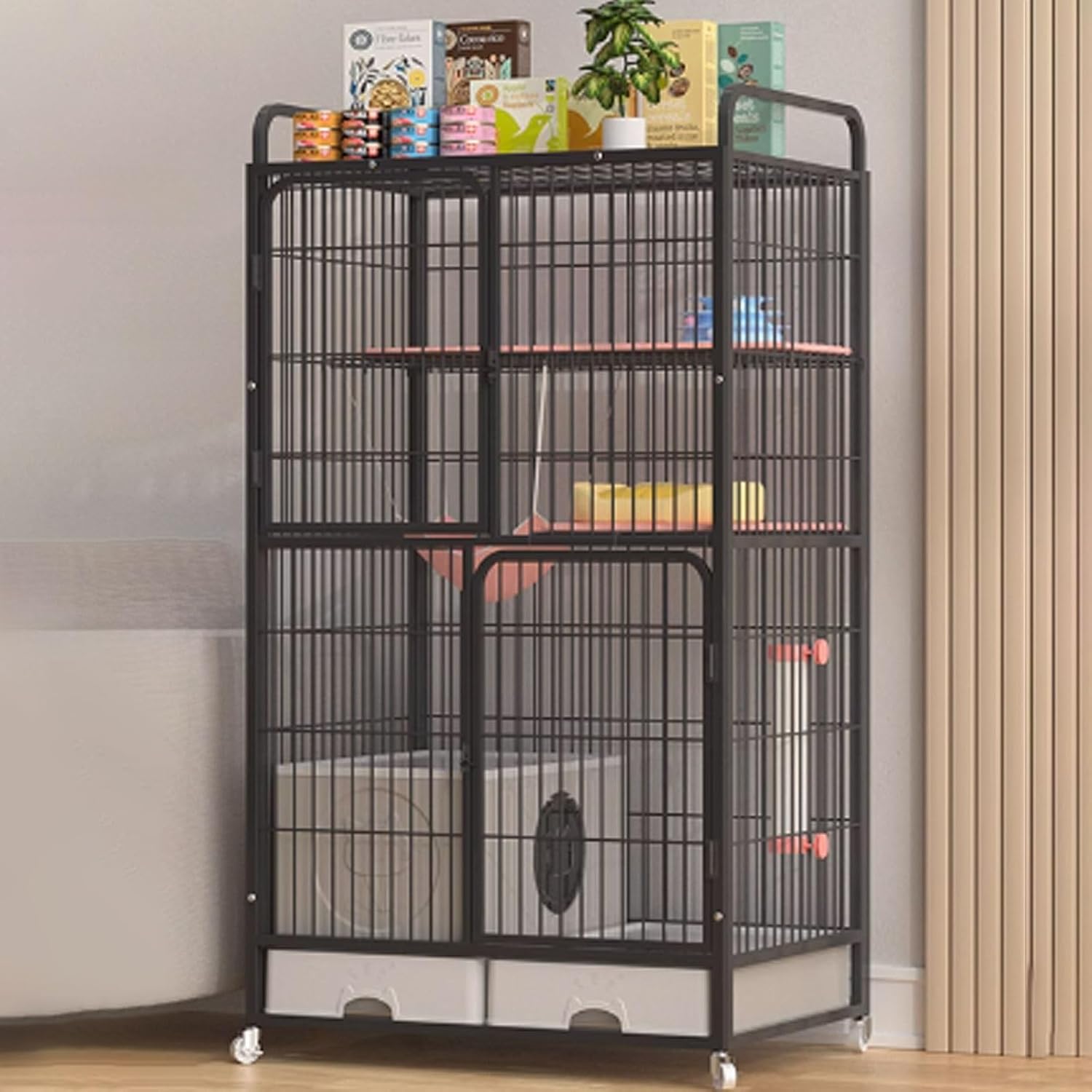 Give your cat the comfort they deserve while enjoying the practical benefits of a well-designed GUQASDV cat cages indoorBottom Storage: Includes a convenient storage compartment at the base, enclosed cat playpen is really convenient for organizing cat food, toys, and other essentials Easy to clean: the whole iron frame is processed by high-temperature painting to be watter resistant, cat playpen for indoor cats is easy to clean just need to wipeMaterial: ironColor: black, white, goldSize: 83x59x126cm, 83x59x156cmNote: 01 There may be a 3-5cm error in manual measurement which is normal, please understand02 Only the cage is sold, no other accessories are included03 Due to different displays or shooting environments, the product may have color differences, please understand