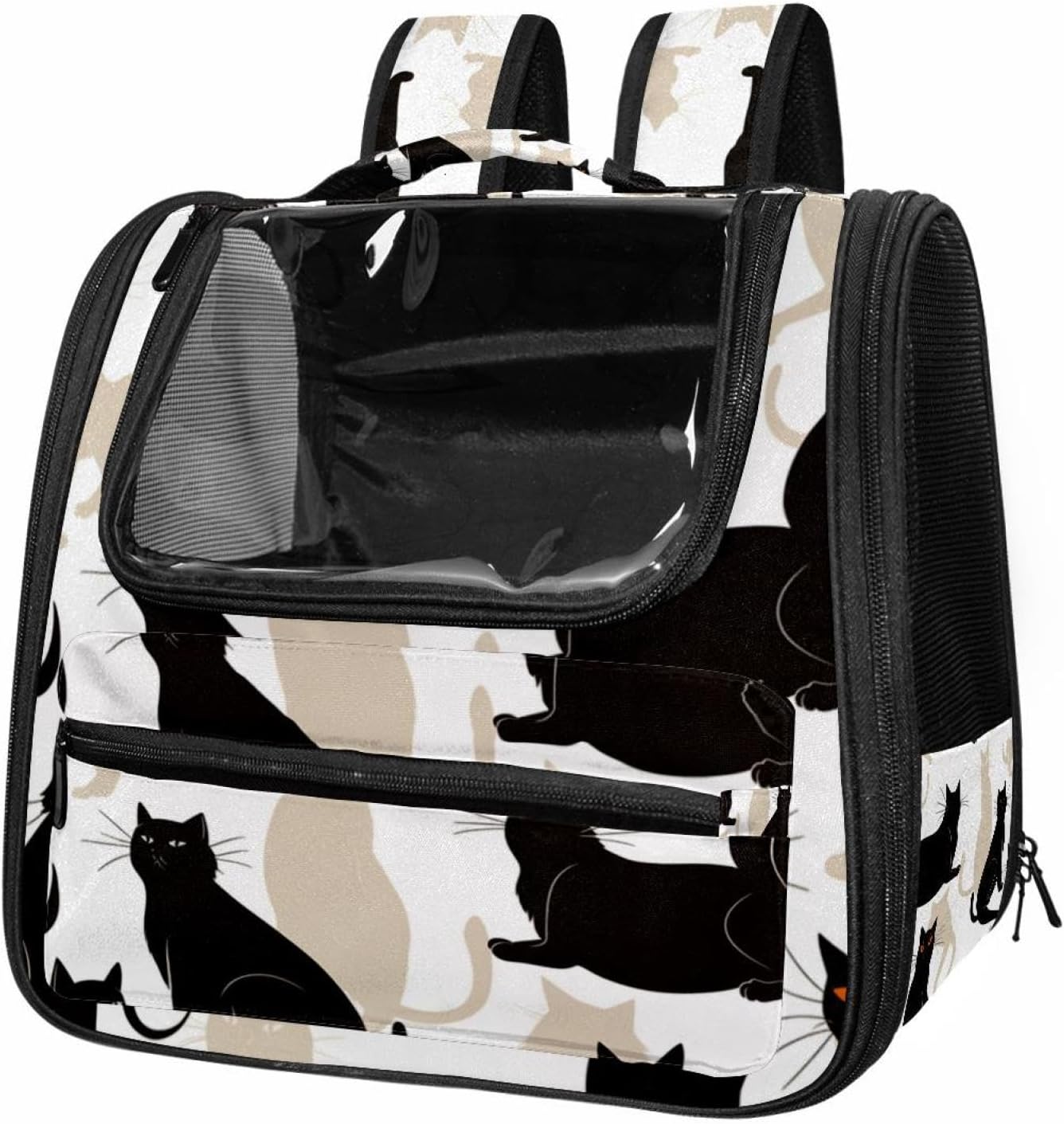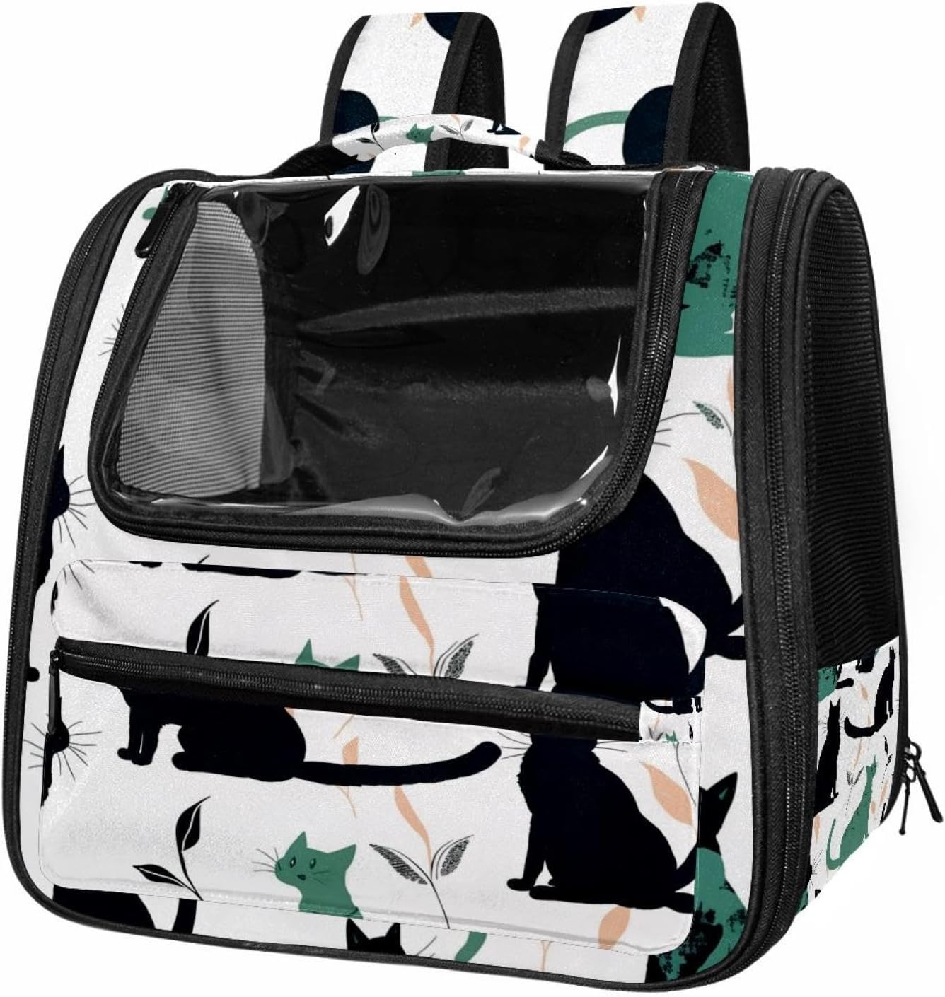 Well made: Cat Backpack Carrier is made from 900D oxford fabric, pp webbing, velvet, nylon, which is very sturdy, environmentally friendly and breathable. Not easily scratched by pet’s claws, pet backpack carrier is SAFETY & ANTI-SCRATCH. The back padding will give you a comfortable and breathable experience. Ventilated Backpack: With a breathable window in the front, this pet backpack allows cats to enjoy the sun without feeling stuffy. There are two side pockets and one big front pocket, and you can take foods or toy for your kitten pet. It is big enough for cat to turn around, and there are side pockets and hook holes, you will enjoy the greatest convenience when taking your cat out. Perfect size: Cat carrier is 15.75x9.84x13.78in/40x25x35cm. Fits most small/medium sized cat, dog, and pet. Quality fleece bed provide a comfortable place for your pet. Lightweight and easy to carry to all places. Built-in harnesses keep your naughty friends from escaping. Removable cosy mat for easier cleaning and let your pet enjoy it inside. Easy to carry: The adjustable shoulder strap of pet carrier bag help you hands-free carrying and makes it the most safe and convenient pet carrier bag for your travel. Seat belt design provide pets with safety protection throughout the trip. Pad protection keep your pets comfortable during travel. Unique Design: Innovative inside graphic design gives you a stereoscopic 3D visual experience. You also send us the photos you interest to make your unique dog or cat carrier. Pet bag is also a amazing gift for pet lover.