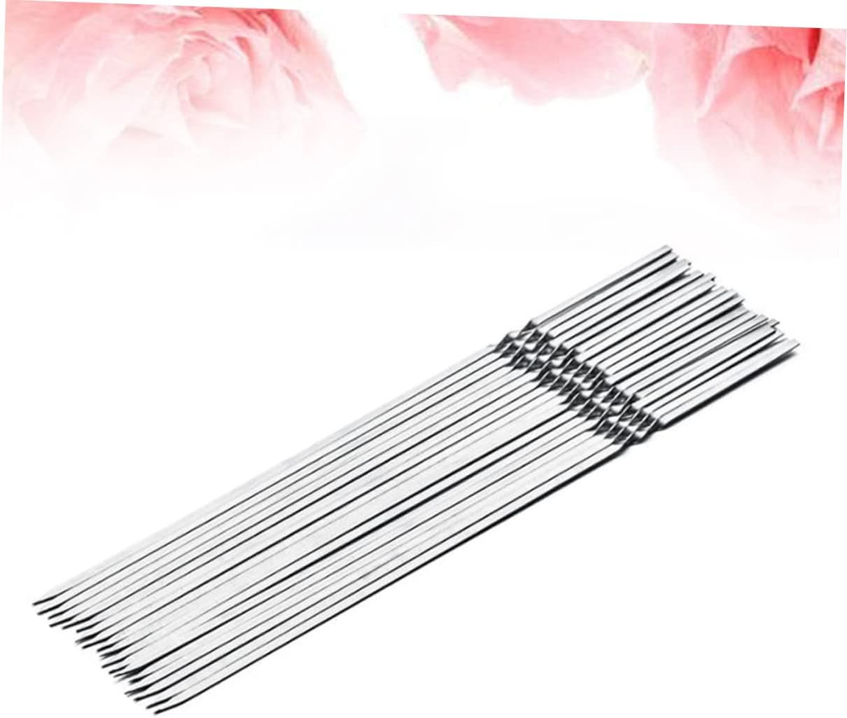 Package List 20 x barbecue sticks Features -Size: Approx 35x1x1cm reusable BBQ skewer. -Color: Silver stainless steel barbecue bar. -Material: Stainless Steel. - Adopting stainless steel design for reused barbecue stick. - Made from food grade stainless steel, contain no harmful chemicals that leach into your food, it is rust- , heavy duty stainless steel barbecue stick. - 35cm long size design prevents people from getting burned easily when grilling barbecue skewer. - Unique shape design prevent your food from spinning/rolling and it makes getting an even cook easier. - Suitable for outdoor BBQ party, barbecue restaurant, camping.Goods Descriptionbarbecue skewer Special shape and wide blades makes your cooking .stainless steel barbecue bar No worry about burned stick destroy the meat's taste anymore.reusable BBQ skewer Included 20pcs barbecue special sticks, and all of these sticks are made of stainless steel material.stainless steel barbecue stick Suitable for BBQ lovers and home BBQ party holders