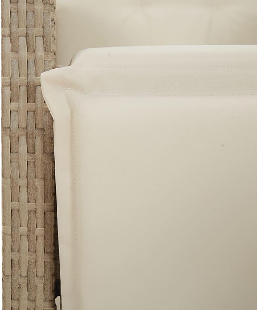 This 3-piece bistro set mixes comfort and style, great for hanging out or enjoying a quiet brew on your balcony or patio. With its sleek beige poly rattan and muted tones, this set fits right into any outdoor decor, creating a warm and welcoming vibe.Comfort: The adjustable multi-position backrest lets you find your comfy spot, making it well-suited for lounging with a book or having a meal.Durability: Made from UV- synthetic poly rattan and powder-coated steel, this bistro set can handle the weather, ensuring it lasts while resisting fading and .Easy Care: Enjoy hassle-free maintenance with removable and washable seat covers that zip off for easy cleaning and protection against spills.Space Efficiency: The square design of the table and chairs makes it easy to squeeze this set into tight spots, great for balconies or small patios, maximizing your outdoor fun.Stylish Look: The modern vibe of this bistro set adds a touch of class to any outdoor area, making it ideal for having friends over or enjoying a chilled evening under the stars.Color: Beige Shape: SquareMaterial: Synthetic Poly RattanFinish: Matte Indoor/Outdoor: Outdoor OnlyCover Included: YesRoom: Garden and TerraceHeadboard Included: NoMaximum Weit: 242.5 lbsDimensions: 31.5 x 31.5 x 29.1 in. (W x L x H)Min-Max Dimensions: 36.6/43.3Surface Height: 29.1 in.Leg Height: 29.1 in.Seat Depth: 22.4 in.Swings: NoLadder: NoBrand: vidaXLDelivery Contains: 2 x Reclining garden chairAssembly Required: YesSKU: 3212570EAN: 8721012323032