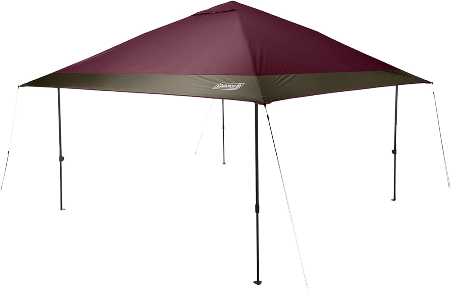 Great adventures are made in the shade—especially when there's plenty of it. Meet the Coleman® OASIS™ canopies. Kicking back at the campsite, enjoying a beach day, or firing up a backyard barbecue? The Coleman OASIS 13 x 13 Canopy with Sun Wall sets up easy using a one-push center hub with OnePeak™ technology. For those times when extra shade or wind protection is needed, the sun wall can be conveniently attached to any side. The robust steel frame withstands winds up to 35 mph when the canopy is fully staked and the vented roof releases trapped heat so you stay cool even in the warmest conditions. Plus, the Comfort Grip™ pinch-free buttons make the canopy easy to set up and take down. With UPF 50+ sun protection, overhanging eaves for more shade, and a wheeled carry bag for easy transport, this canopy is your perfect companion for your next outdoor sports event, camping, or glamping escapade.