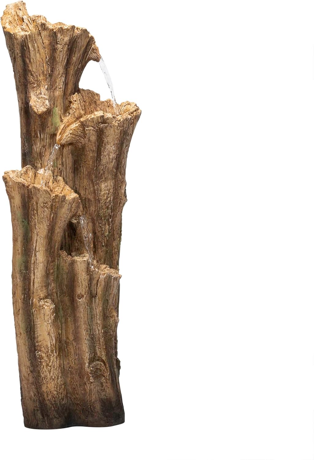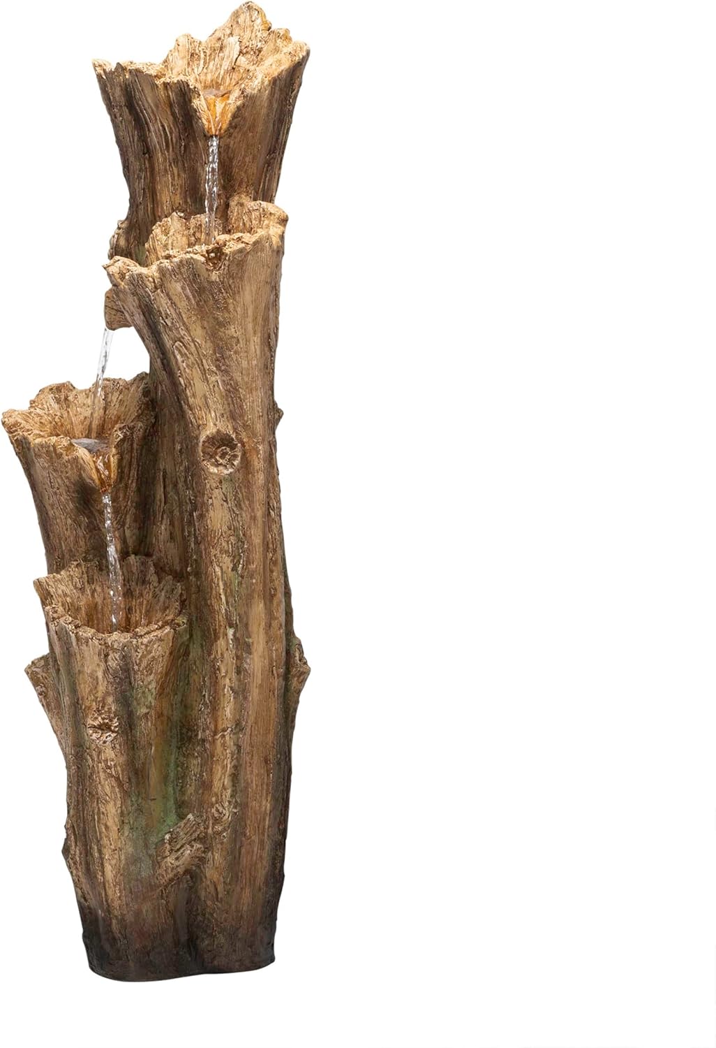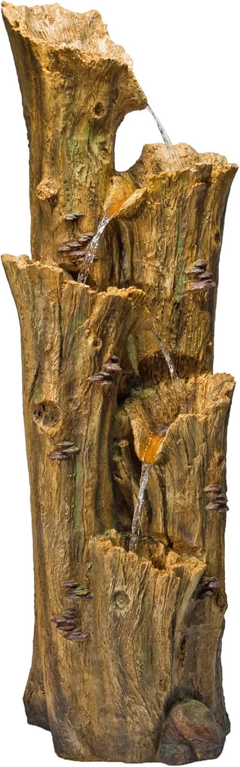 Enhance your outdoor living space with this 47" tall Outdoor 3-Tier Cascading Tree Bark Water Fountain with LED Lights from Alpine Corporation. This cascading waterfall fountain provides a tranquil and soothing addition to your porch, backyard, or lawn. Constructed from durable polystone and fiberglass with a natural look and realistic textures, the fountain is weatherproof, rust-resistant, and resilient. This tall lawn statue will bring a touch of natural beauty to your outdoor space. Replicating weathered tree logs, the fountain becomes illuminated with the included 3 cool white LED lights, and is sure to make you feel like you’re sitting beside a babbling brook. Relax to the sounds of the soft, natural water flow as it cascades down from the top tier of the fountain through the hollow tree trunk. Not only will the fountain provide you with serenity, it will also attract birds to your outdoor area, which in turn promotes healthy gardens. This majestic floor fountain provides an elegant addition to your courtyard, patio, or yard, and gives your garden visual interest with its natural waterfall style. For quick install and convenient operating, the fountain includes all necessary parts, as well as a pump, to begin creating an outdoor oasis. This standing fountain measures 18"L x 15"W x 47"H to fit almost any outdoor space and includes a two-year manufacturer's warranty from date of purchase. Alpine Corporation is one of America's leading designers, importers, and distributors of superior quality home and garden decor products. Alpine's award winning in-house design team continuously develops new and innovative "statement pieces" for your home and garden. Your outdoor living spaces will be the envy of the neighborhood with our wide assortment of fresh, fashionable and contemporary products, from beautifully crafted solar garden stakes featuring patented motion and fiber optic lighting technology to gorgeous glass and glow-in-the-dark birdbaths and feeders.