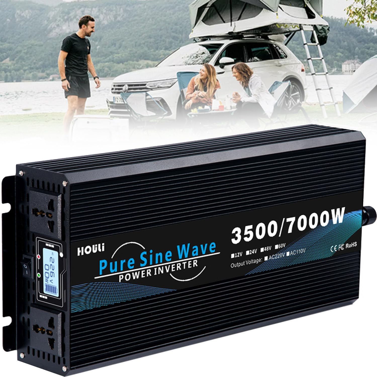 Are you concerned about unexpected power outages during your travels or at home? Our Pure Sine Wave Inverter is designed to enhance your lifestyle with reliable power solutions at an affordable price. This versatile inverter delivers high-quality power for a variety of settings, including your home, vehicle, boat, caravan, or during outdoor adventures.With its ability to charge smartphones, laptops, appliances, TVs, and even camping equipment, our inverter is your perfect travel companion. The unit is compatible with various input voltages (12V, 24V, 48V, 60V, 72V) and outputs a stable voltage range (110V-130V or 220V-240V) to meet your power needs.Key features include:- Comprehensive protection against overload, over-voltage, over-temperature, and short circuits, ensuring safety during use.- A built-in smart fan that operates quietly, helping to minimize heat and enhance performance.- An ultra-compact and lightweight design, making it ideal for holidays, business trips, or camping excursions.Please keep in mind:1. Select an inverter that matches the voltage of your battery.2. Always ensure the inverter switch is off before connecting.3. Tighten the positive (+) and negative (-) connections to prevent overheating caused by loose contacts.4. Avoid overloading; for inductive loads, choose an inverter with a continuous output power 3-7 times higher than the device you intend to use.Experience peace of mind with our Pure Sine Wave Inverter, and stay powered up wherever life takes you!