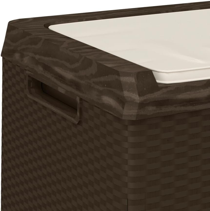 Patio, Lawn & Garden / Patio Furniture & Accessories / Deck BoxesThis garden storage box with a rattan look is ideal for storing your cushions, pillows, blankets, toys, and other items in the garden or on the patio.Durable material: Polypropylene (PP) is a popular plastic that is also one of the most used materials in outdoor furniture. It's lightweight, tough, and resistant to impact. Also, this storage box is weather-resistant and UV resist, and easy to maintain. Ample storage space: This outdoor storage box has 92.5 gal of storage space for cushions, pillows, blankets, garden tools and more to keep your garden space tidy! Multi-purpose use: This storage chest is not only used as a garden storage container, but also has a comfortable cushion with a load capacity of 551.2 lb, which can be used as a chair, ideal for the garden, backyard, front porch and more! Gas-lift design: The gas-lift design helps you easily open the top fully and close it slowly, making it easy to use without crushing your fingers. Lockable: This outdoor cushion storage can be locked for added safety (lock not included). Good to know:To make sure your outdoor furniture stays beautiful, we recommend protecting it with a water resist cover.Color: Brown Material: 100% PP (Polypropylene) Cushion material: Fabric (100% polyester) External dimensions: 48.8" x 21.5" x 23.2" (L x W x H) Internal dimensions: 44.5" x 18.5" x 20.9" (L x W x H) Cushion dimensions: 42.5" x 16.9" x 1.2" (L x W x T)Capacity: 92.5 gal Maximum seat load capacity: 551.2 lb Assembly required: Yes