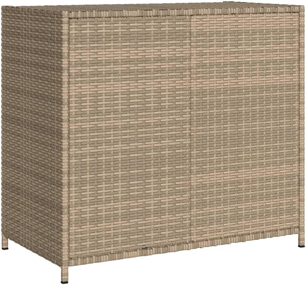 Patio, Lawn & Garden / Patio Furniture & Accessories / Deck BoxesThis patio storage cabinet is perfect for keeping your outdoor furniture cushions, gardening supplies, pool towels, and other items organized and easily accessible.Durable material: PE rattan, also known as poly rattan, is a strong, low-maintenance synthetic material that looks like natural rattan. It's lightweight, easy to clean, and commonly used for outdoor furniture due to its durability and weather-resistant properties.Ample storage space: This outdoor storage cabinet has a large space behind the two doors to store your garden tools, pool toys, outdoor cushions, and more.Robust and stable frame: The powder-coated steel frame ensures the garden furniture is strong and stable for daily outdoor use. Practical doors: Both 2 doors are equipped with stainless steel door knobs and magnets for easy opening and closing.WarningTo prevent it being overturned, this product must be used with the provided wall attachment device.Good to know:To make sure your outdoor furniture stays beautiful, we recommend protecting it with a water resist cover.Color: BeigeMaterial: PE rattan, powder-coated steel, stainless steelDimensions: 32.7" x 17.7" x 29.9" (W x D x H)Feet height: 1.8"Max. loading capacity (per shelf): 33.1 lbAssembly required: Yes