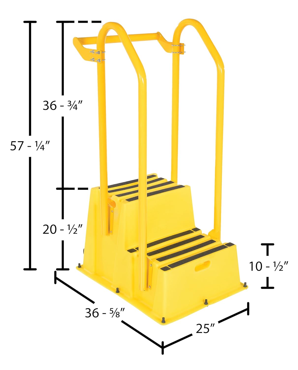 A poly step stool is a great asset for on the go or in a permanent setting. A lightweight design with front and side cutout handles, allow the user to easily transfer the stool to a preferred spot. The taped step surfaces ensure safe footing while traversing up and down the steps. Includes bolt on back rail, handrail, and casters. The hand rails height allows the unit to be pushed or pulled into the desired position, minimizing bending and twisting by the user. Steps can be nested to minimize footprint when not in use.