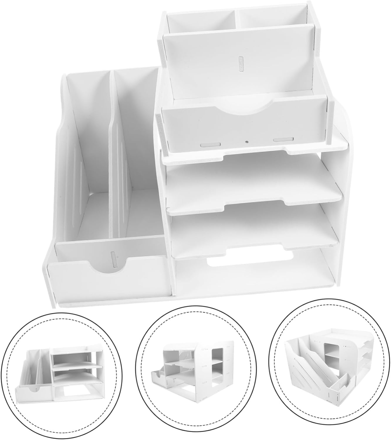 Package Include 1 x file organizer Features -Color:White Desktop Storage Shelf -Material:Wood-plastic composite Desktop Storage Shelves -Size:40.00X31.00X25.00cm/15.72X12.18X9.82in File Organizing Shelf - Made of sturdy and thick wood-plastic composite material, and for long-term use File Storage Container. - The Paper Tray can keep your files organized to up space on your desk. office supply for friends Document Shelf. - With this office desk document storage rack, your desktop will not in a disorder anymore Office Storage Holder. - Unique portable design makes paper sorting and storage very easy to move and place where you need it! Classroom Document Holder - Quickly store document, letters, file folders and more, keeping everything in view and within reach Simple Organizing Shelf.Goods InformationOffice Tabletop Organizer The unique and creative design can not only help you organize your desk but also increase the desktop beauty for you.Desk Pen Holder Stand Portable and compact, convenient to remove.Simple Organizing Shelf Suitable for office, study, lab, dorm use.Desktop Organizer Made of carefully selected material, these file storage rack is and lightweight for long-lasting use, very solid and not easy to deform and damage