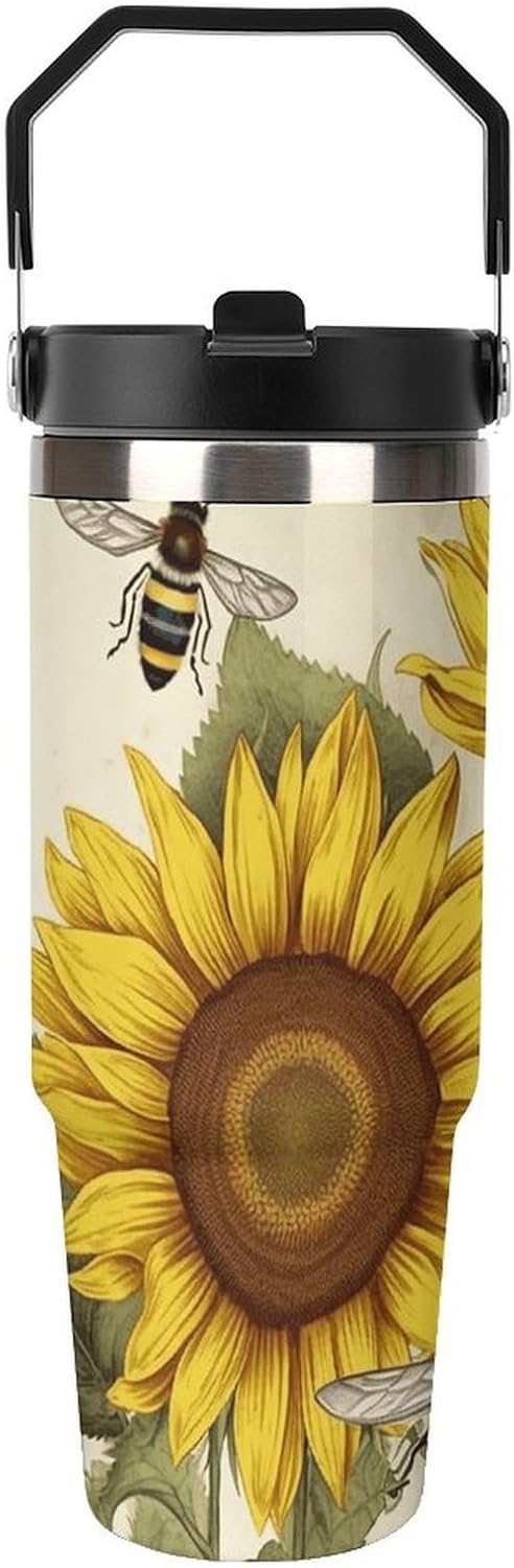 Our Bees Sunflowers Daisy Rose Flowers travel water bottle is made of food-grade stainless steel. The wide mouth design makes it easy to clean and add ice, and the powder-coated exterior is non-slip and durable, ensuring driving safety.Whether you prefer sipping or quenching your thirst, this personalized insulated mug has you covered. Featuring a splash-proof straw design, a sealing ring securely holds the reusable straw, and a drinking spout and full-coverage lid for enhanced leak-proof performance, this mug allows you to easily carry ice water to work, meetings, the gym, or on trips.You can give it to your friends and family as a birthday, Mother's Day, Father's Day, New Year's, Thanksgiving, and holiday gift. It's a thoughtful present.