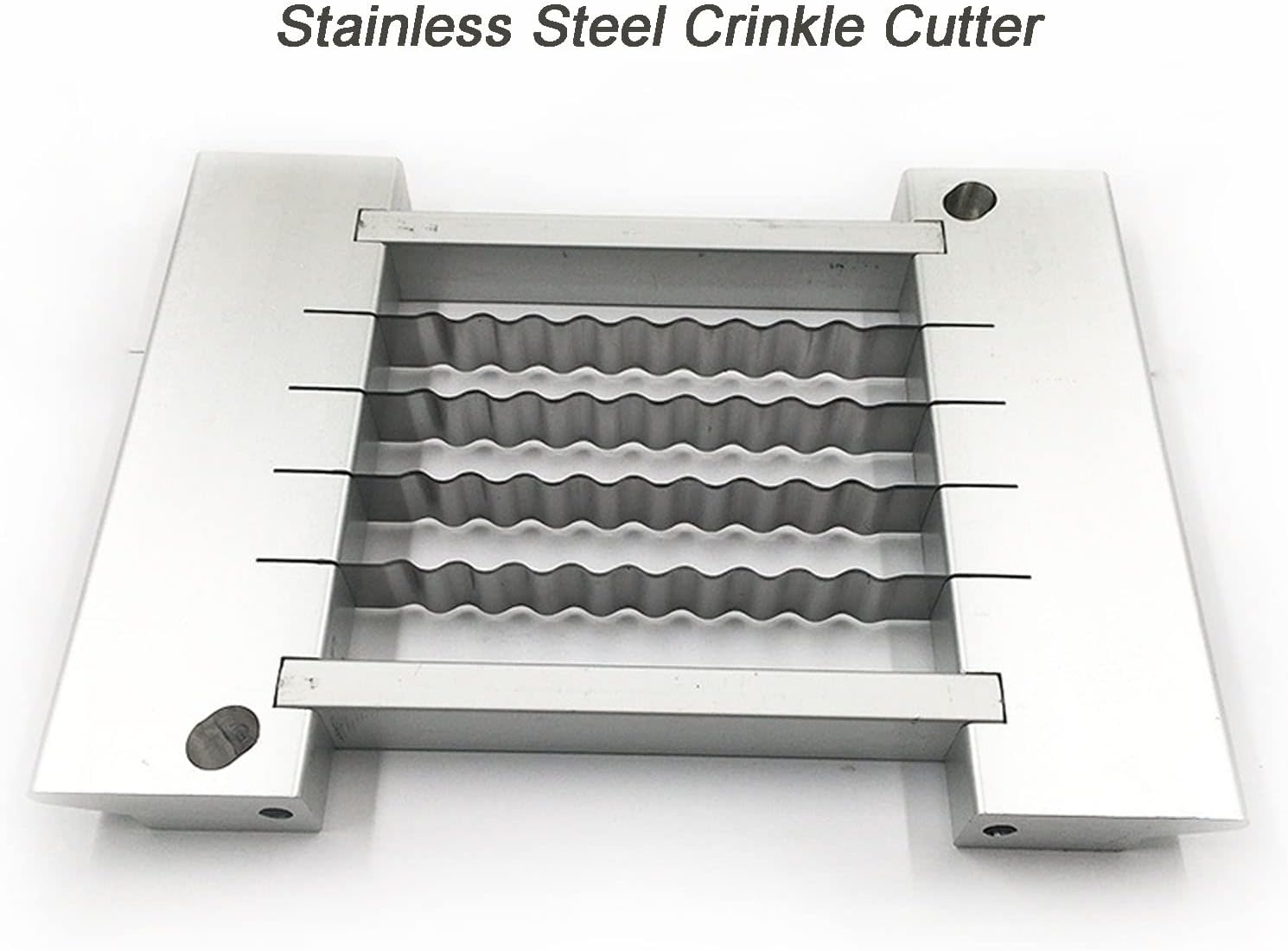 Item Name: Creative Waved Potato CutterDesigned to cut waved edge potato stripes or slices as profession cook doesCommercial Grade Stainless Steel French Fry Cutter Potato Onion Chipper Slicer with 2 Blade,Fruit Vegetable Slicer for Potatoes Carrots Cucumbers Home Kitchen.Item type: French Fry CutterMaterial: Food grade PP plastic + Aluminium alloy, 420 stainless steelSuitable for: Perfect for slicing various foods such as meat, deli, cheese, roast beef, turkey breast, vegetables, fruits, etc. Suitable for both home and commercial use.Product Size: 49*26*50cm/ 19.3X10.2X19.7inchProduct Weight: 7.8kg/ 17.2lbPackage Weight: 8.6kg/ 19lbMulti-function, multi-choice:4 Different Size Stainless Steel Blades 1/4", 1/2", 3/8" ,3/16”;2 Different Blade type,Crinkle Cutter and sharp cutter.Package Included:1 x French Fry Cutter2 pcs 420 Stainless Steel BladesHow to replace blade:Rotate the button to right direction, then put the new blade after taking out the old blade, rotate button to fix it.Important:1.If your potato size is bigger than cutter capacity, please slice it into half size firstly before using the cutter.2.Please dont use it to cut sweet potato as it is too hard and it may damage the cutter. Notes:1. Measurement of the item lying on the table may cause slight difference.2. The real color of the item may be slightly different from the pictures shown on website caused by many factors such as brightness of your monitor and light brightness when photo taking.