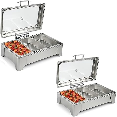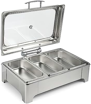 Elevate your dining experience with our premium chafing dish, expertly crafted for seamless food presentation at various events such as weddings, corporate gatherings, brunches, and buffets. This versatile display solution enhances any self-service setting while ensuring your dishes remain at the optimal temperature. **Transparent Top Cover:** The spacious cover provides unobstructed visibility of the food, allowing guests to appreciate the spread without the hassle of opening the lid repeatedly. This feature enhances convenience and helps retain warmth, making it an ideal choice for both casual and formal occasions. **Hydraulic Roll Top Lid:** Our chafing dish is equipped with a premium hinge that allows the roll top lid to close slowly and quietly, minimizing spills and potential damage. This thoughtful design enhances safe handling and ensures a seamless service experience. **Adjustable Heating Function:** The 400W electric heating plate delivers efficient and uniform heating with 9 adjustable temperature settings ranging from 35°C to 70°C. This flexibility ensures your food stays at the desired temperature, whether it’s a hearty buffet or a delicate dessert display. **Product Specifications:** - **1/1 Pan:** - Overall Size: 23"x 17"x 10" / 58 x 44 x 26 cm - Food Pan Dimension: 20.8" x 13" x 2.5" / 53 x 33 x 6.5 cm (1 included) - Power Cord Length: 60" / 1.5m - Capacity: 8 Quarts / 9L - Material: Food Grade Stainless Steel - **1/2 Pan:** - Overall Size: 23"x 17"x 10" / 58 x 44 x 26 cm - Food Pan Dimension: 10.6" x 13" x 2.5" / 27 x 33 x 6.5 cm (2 included) - Power Cord Length: 60" / 1.5m - Capacity: 8 Quarts / 9L - Material: Food Grade Stainless Steel - **1/3 Pan:** - Overall Size: 23"x 17"x 10" / 58 x 44 x 26 cm - Food Pan Dimension: 6.7" x 13" x 2.5" / 17 x 33 x 6.5 cm (3 included) - Power Cord Length: 60" / 1.5m - Capacity: 8 Quarts / 9L - Material: Food Grade Stainless Steel Discover the perfect blend of functionality...