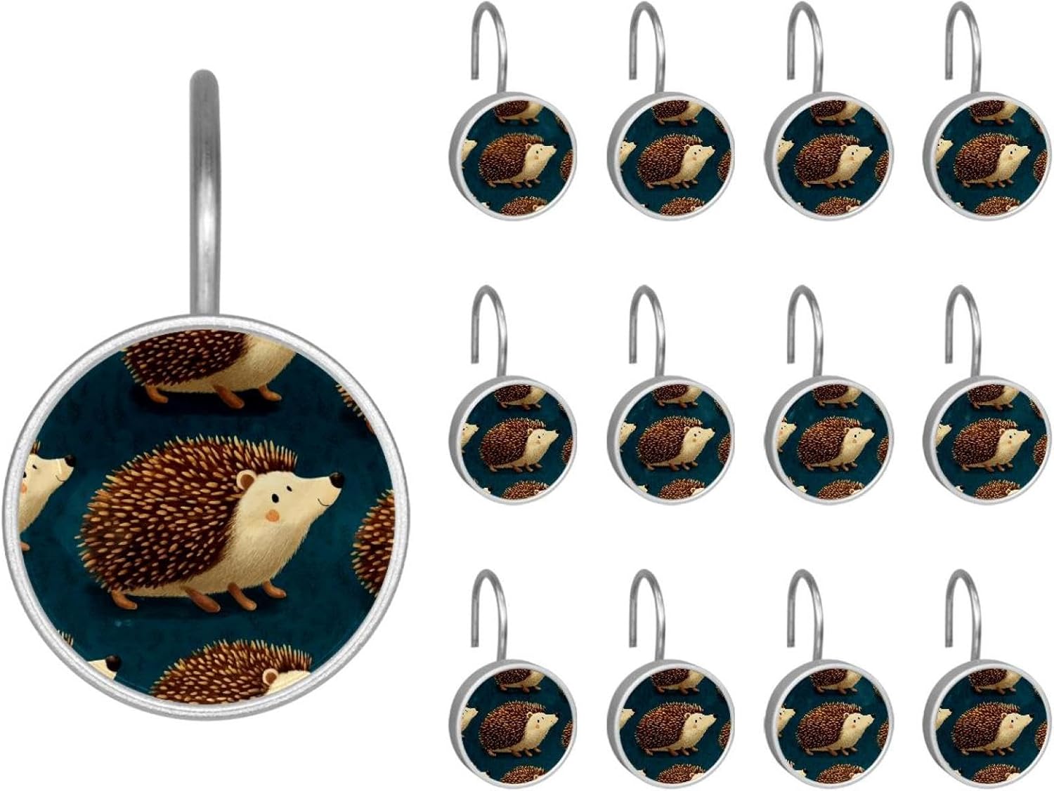 MATERIAL: glass, stainless steel. These shower curtain hooks can be decoration bathroom and will be long-lasting.12 pieces of shower curtain hooks, round crystal glass decoration, printed patterns, silver hooks to match various styles of bathroom shower curtains. SIZE: Crystal glass diameter of round shower curtain hook is 1.45x1.45in/ 3.7x3.7cm. The shower curtain hooks diameter is about 1.1in, 12 pieces shower curtain hooks are suitable for rod of 8-28mm(0.3"-1.1"). RUST RESISTANT:Shower hooks are made of stainless steel and crystal glass, which is durable, rust-proof and corrosion-resistant, it will not rust suitable for wet bathroom environment. EASY TO INSTALL:Hand the shower curtain hooks hold securely on straight or curved shower curtain rods,slid easily and smoothly. Easy to install and decorate your bathroom. BEAUTIFUL AND ELEGANT:Beautiful Love hook add charming scenery for your bathroom, baby room, bedroom, living room, and the gorgeous style is easy to match with any kinds of bathroom shower curtain. EASY GLIDE: Open and close your shower curtain quickly and easily with the Shower Hooks, easily glides on shower curtain rods and tension rods. No snagging; no effort; no hassle PACKAGE: 12 shower curtain hooks in a pack.The bathroom curtain hook has a smooth appearance and can be hung on the pole to pull it at will. Special price 12 sets to meet your needs.