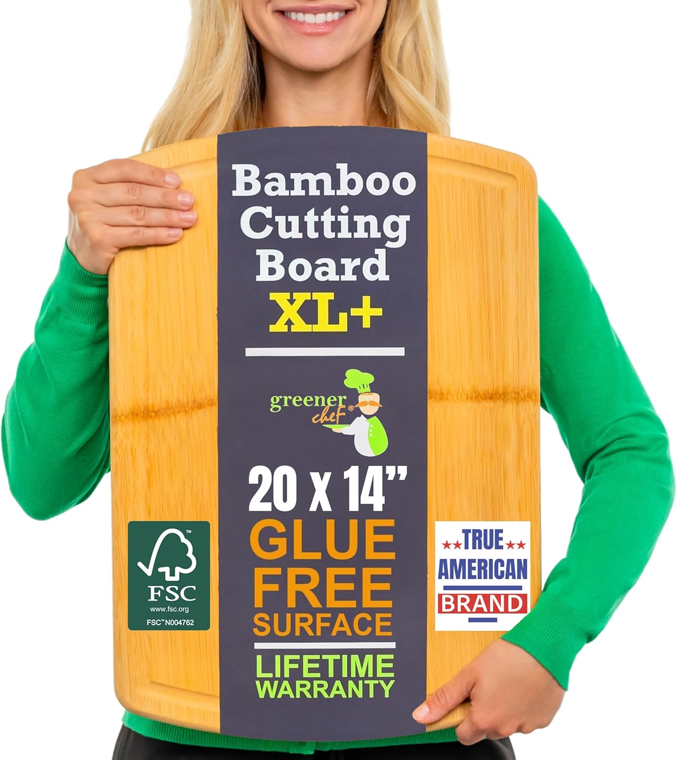 Bring sustainability, safety, and versatility to your kitchen with the Greener Chef FSC Certified Bamboo Cutting Board Set of 4. Designed for eco-conscious families and professional kitchens alike, this complete set offers four different sizes to handle everything from weekday meal prep to holiday feasts and charcuterie spreads. Our Glue-Free Surface innovation means the largest cutting areas are crafted from single sheets of bamboo—completely free of adhesives, chemicals, or toxins where your food touches. The result? A safer, non-toxic surface you can trust for carving roasts, prepping veggies, or serving cheese and bread. Each board includes a deep juice groove to catch drips and keep counters clean during brisket carving, fruit slicing, or everyday chopping. Thanks to bamboo’s natural hardness, these boards are durable yet knife-friendly, helping blades stay sharper longer without sacrificing strength. More than just chopping blocks, these boards double as serving and charcuterie trays for meats, cheeses, bread, and appetizers—making them both practical and beautiful for entertaining. Smooth, splinter-free edges ensure comfort and safety every time you use them. Crafted from FSC-certified sustainable bamboo, this set is eco-friendly and family-safe—aligned with Greener Chef’s mission of creating products that protect both people and the planet. Loved by chefs, parents, entertainers, and eco-conscious households, these boards are also a thoughtful gift for weddings, housewarmings, birthdays, or holidays. And with our Lifetime Replacement Warranty, you’re not just buying cutting boards—you’re investing in lasting peace of mind.