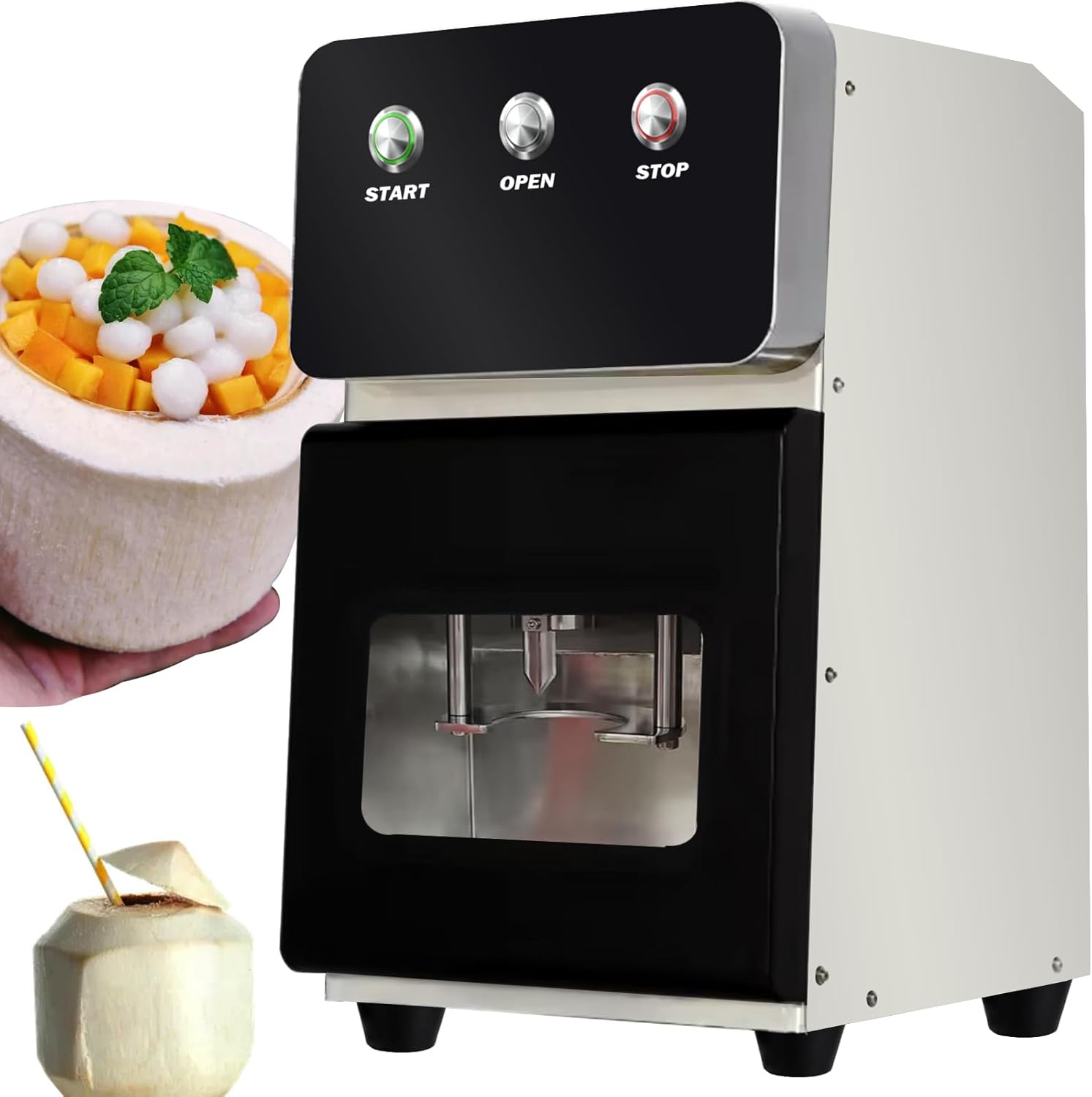 Description: 1.After drinking coconut juice and then digging coconut meat, the efficiency of opening coconut is high Specification: 1.Voltage:110V/60HZ,110V/50HZ,220V/60HZ,220V/50HZ and custom voltage 2.Material: Stainless steel 3.Coconut lid machine’s Size: 12.2 * 13.3 * 22.4 inches/310 * 340 * 570mm 4.Production capacity: 15-20 seconds/piece 5.Hole diameter can be cut: 2.36inch/60MM or 2.75 inch/70mm 6.Coconut diameter: 4.3~6.29 inches/110-160mm 7.Coconut height: 4.3~6.1 inches/110-155mm 8.Power:400W 9.Color: Silver 10.Net weight: 77.175LB/35kg Feature: 1.[There are 3 buttons]:start,open,stop,easy to operate 2.[High Efficiency]:15-20 seconds high-speed coconut opening 3.[Stainless steel blade]:Easy to replace blades 4.[Advantage]:Green coconut opening machine, with smooth cutting, compact and beautiful appearance, saving time and effort Application: Suitable for wholesale use in supermarkets, shops, tourist attractions, sea view stalls, and processing factories.