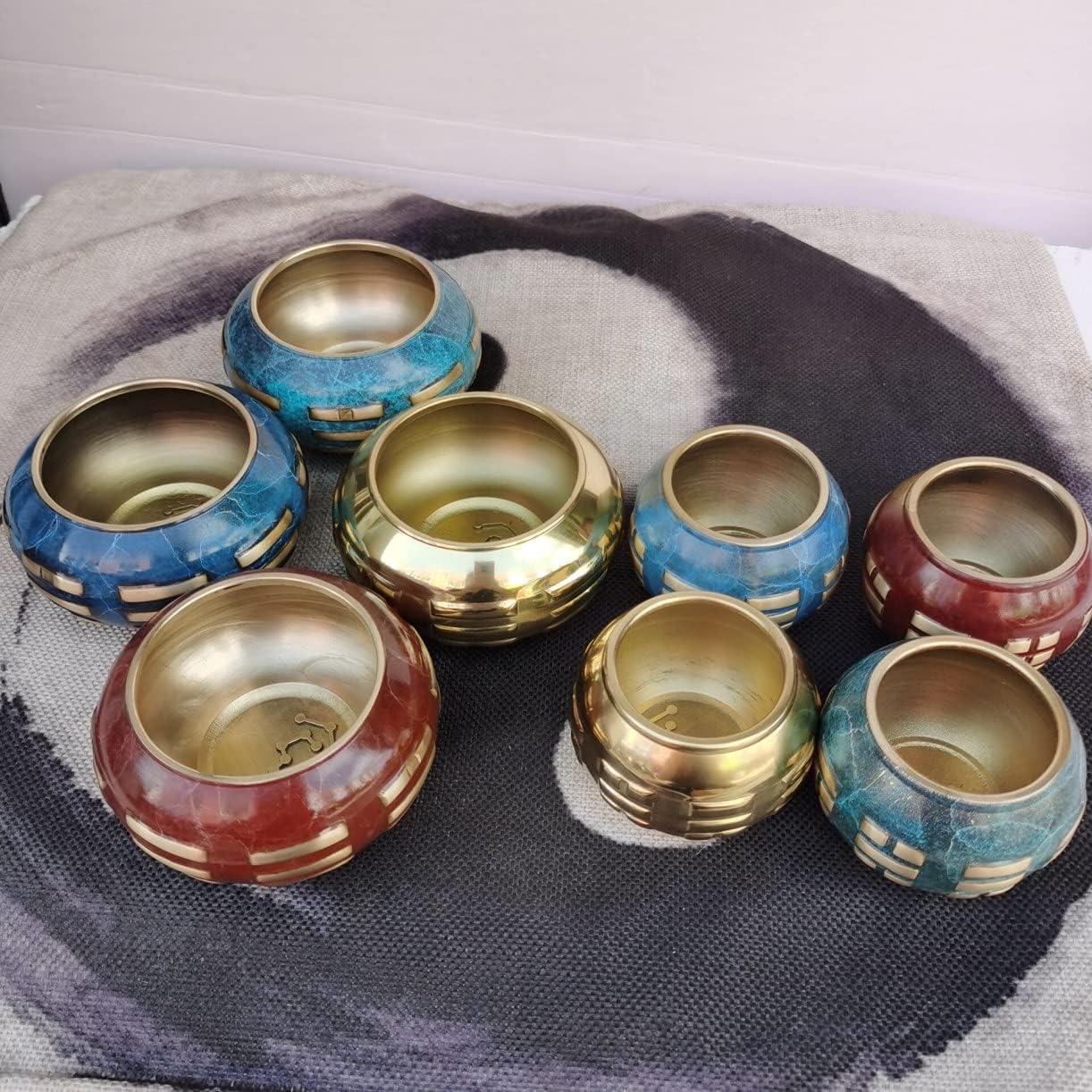 ✿✿QTY: 1PC ✿✿Material: pure brass ✿✿ Size S : height 5cm, width 7cm ✿✿Color: Blue ✿✿For Home Decor Ornament, Chinese Feng Shui Good Luck,Bagua Water Cup,Taoist supplies
