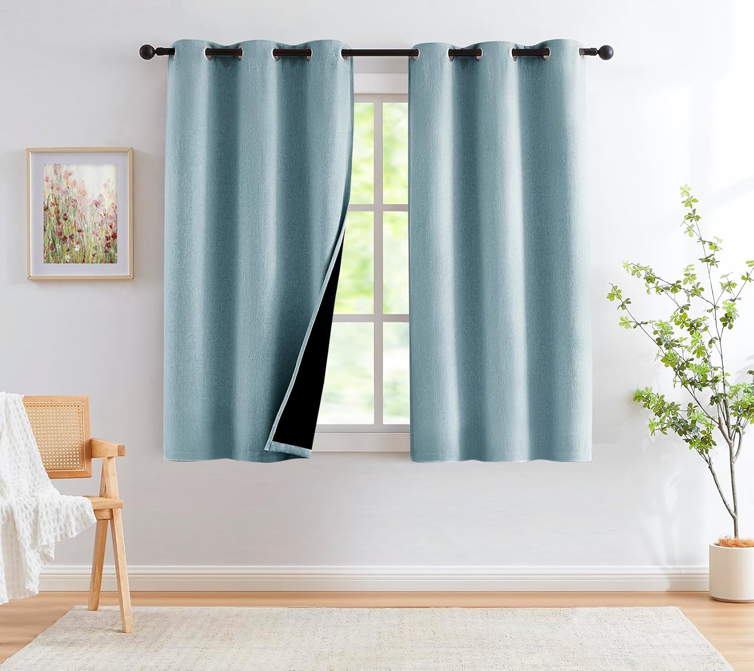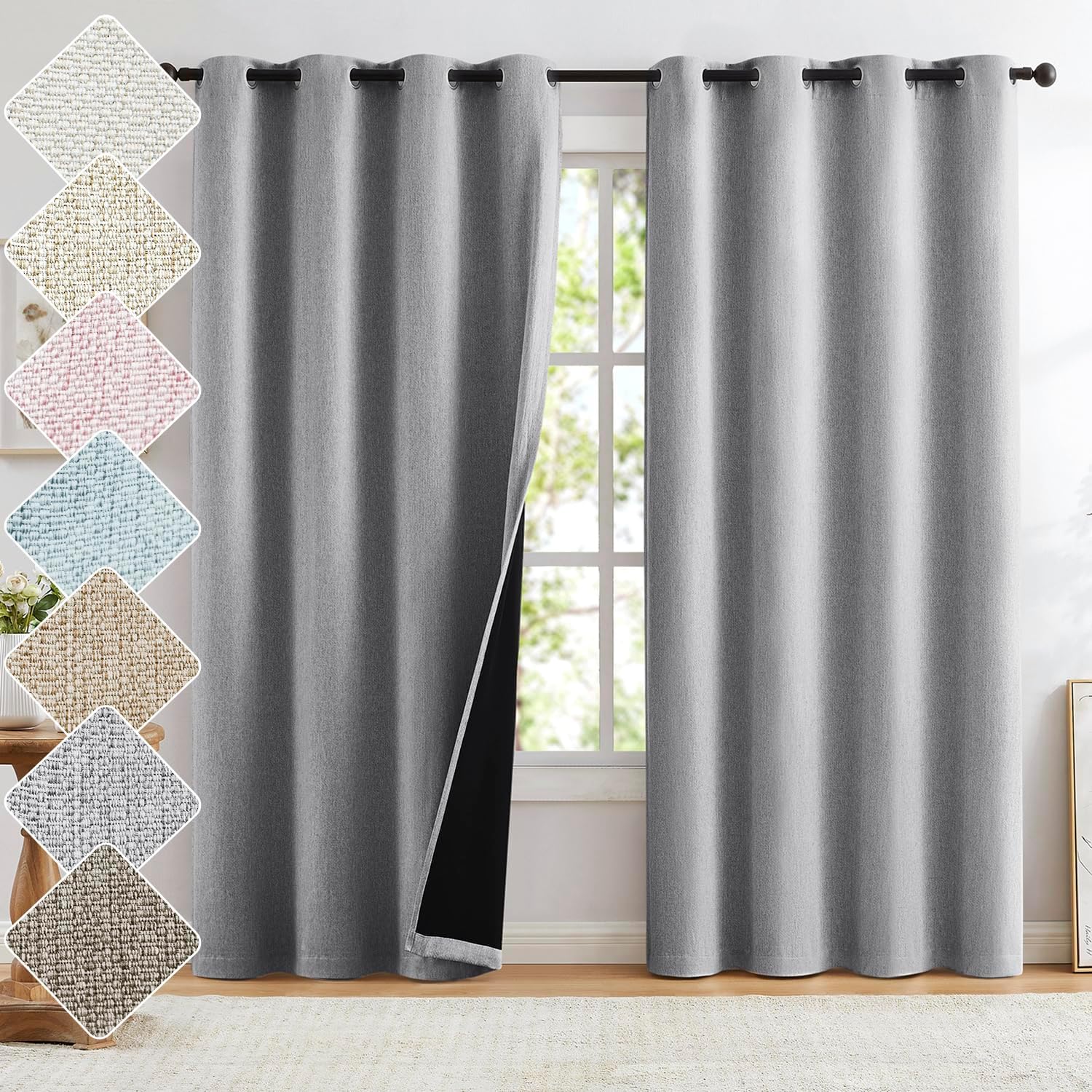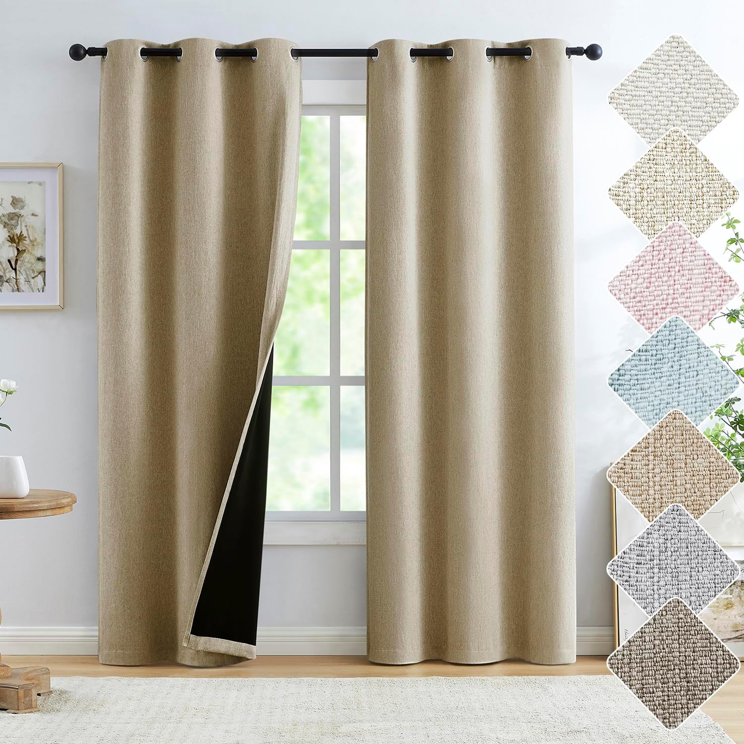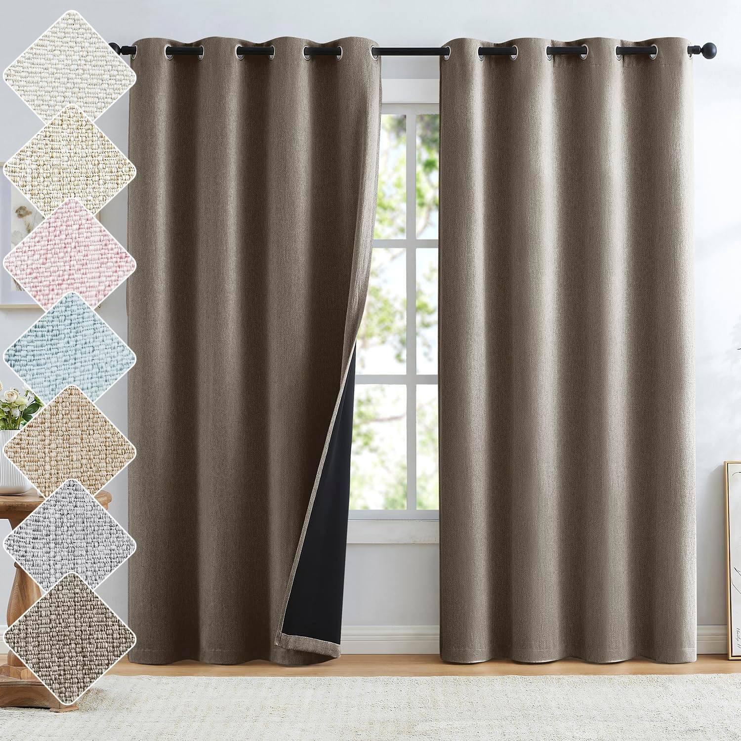 | Material Type | 100% Polyester, Burlap linen textured blackout curtain fabric |